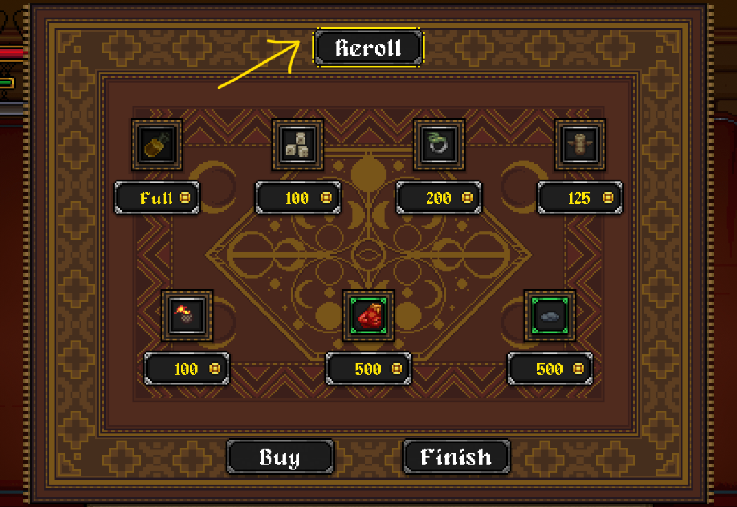 - NEW Merchant Rerolls. Now you have 1 free re-roll per merchant instance. Any purchased item slot is not eligible for a reroll.