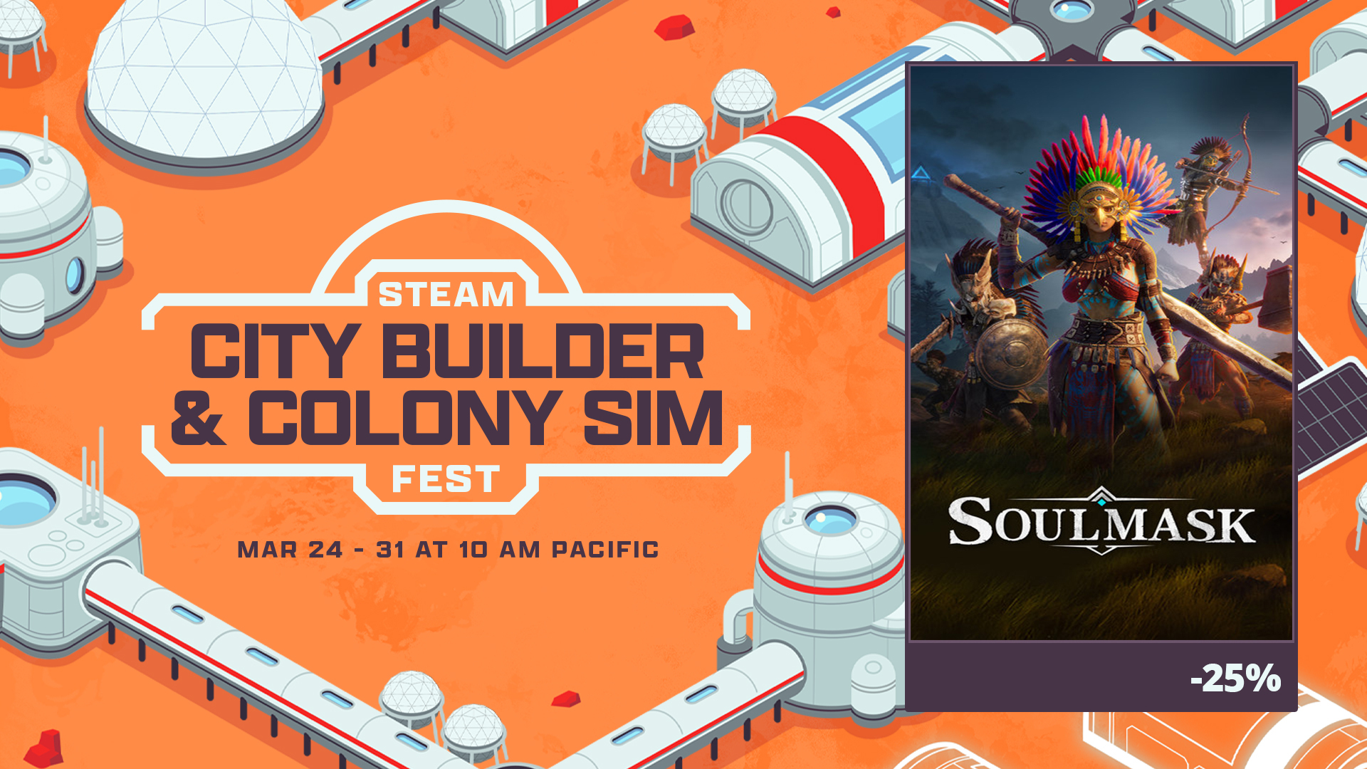 During the City Builder & Colony Sim Fest from 3/24 to 3/31, Soulmask will be available at the deepest discount of [b]25% OFF[/b] in this construction carnival!