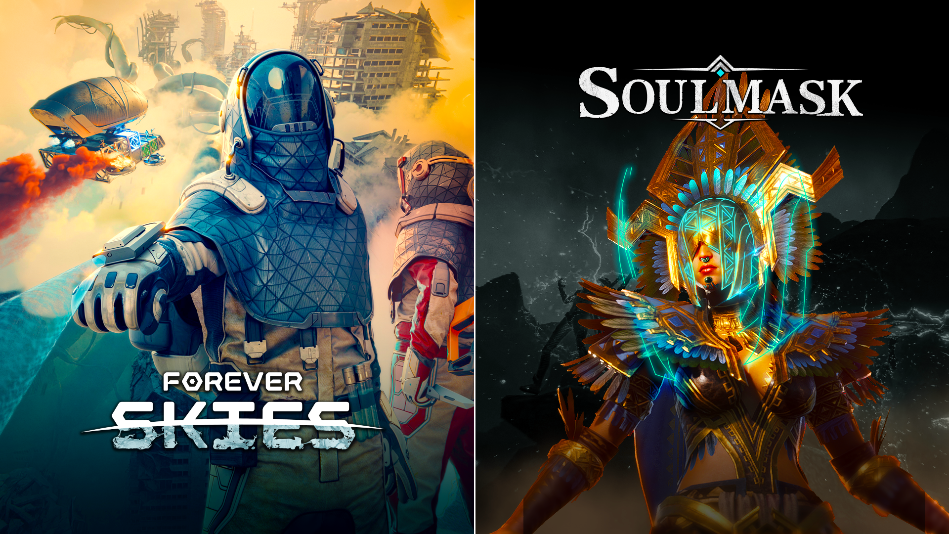 From post-apocalyptic wastelands to lethal rainforests, from soaring airships to automation—we’re excited to announce the ultimate “Sky and Land” bundle, combining Forever Skies and Soulmask! Traverse from the futuristic doom of skies to the primal, savage continents—now at a discounted price. And with Forever Skies just hitting its full 1.0 release, there's never been a better time to claim your adventure.