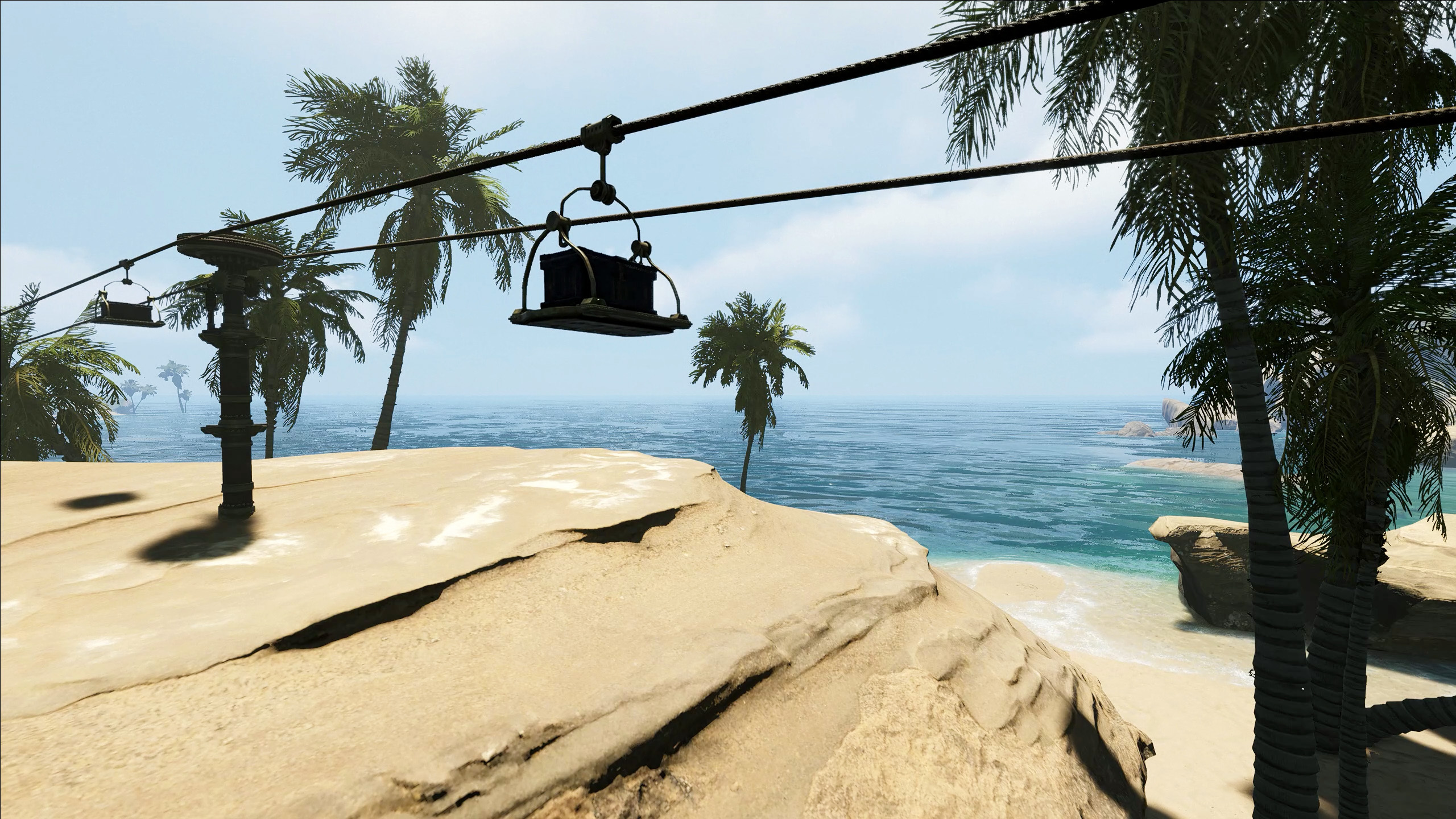 First, welcome to experience the powered ropeway system. [b]Power from windmill arrays can be directly input into these robust cables and pulleys,[/b] creating cargo transportation channels spanning camps, mines, and everywhere in between.