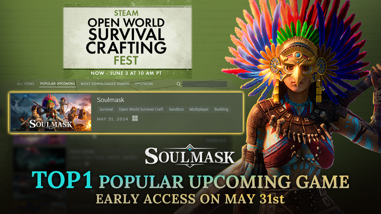 I'm ZIMA, the chief producer! As you all know, our EA is now in its countdwon stage, if you want to learn more about the EA version, feel free to check out this announcement: In these final days, my team and I have been working tirelessly on the last optimizations for Soulmask. I'm pleased to announce that [b]we secured the top spot for Most Anticipated Game at Steam Open world survival Crafting Fest[/b]. To celebrate this rare achievement, I indulged in an extra glass of whisky. Without the support of our players, this wouldn't have been possible, and it motivates us even more to strive for excellence.