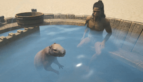And if you're not interested in machinery, how about these adorable creatures? The capybaras have always been one of everyone's favorite livestock, and we wanted to showcase their cute and amusing behaviors in Soulmask. For example, they will take baths on their own! We have added a new building module with pipes, and the capybaras will actively shower themselves: