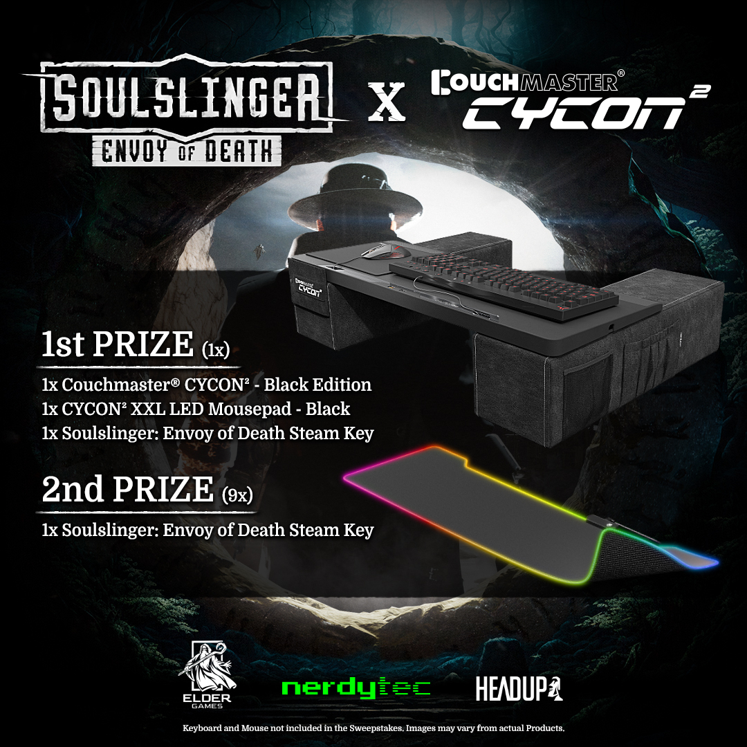 Soulslinger has been available in Early Access since yesterday, and we think that's a good reason to celebrate, right? And since playing roguelite titles can be very strenous, we want you to sit as comfortably as possible! And that's why we teamed up with nerdytec to provide you these awesome prizes: