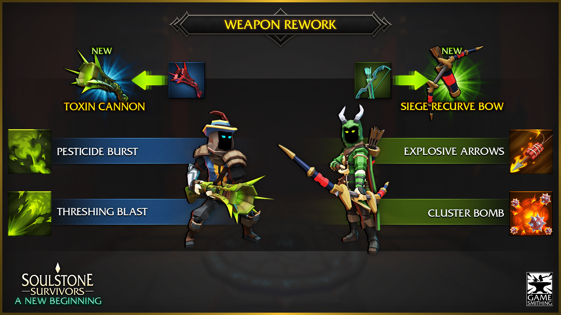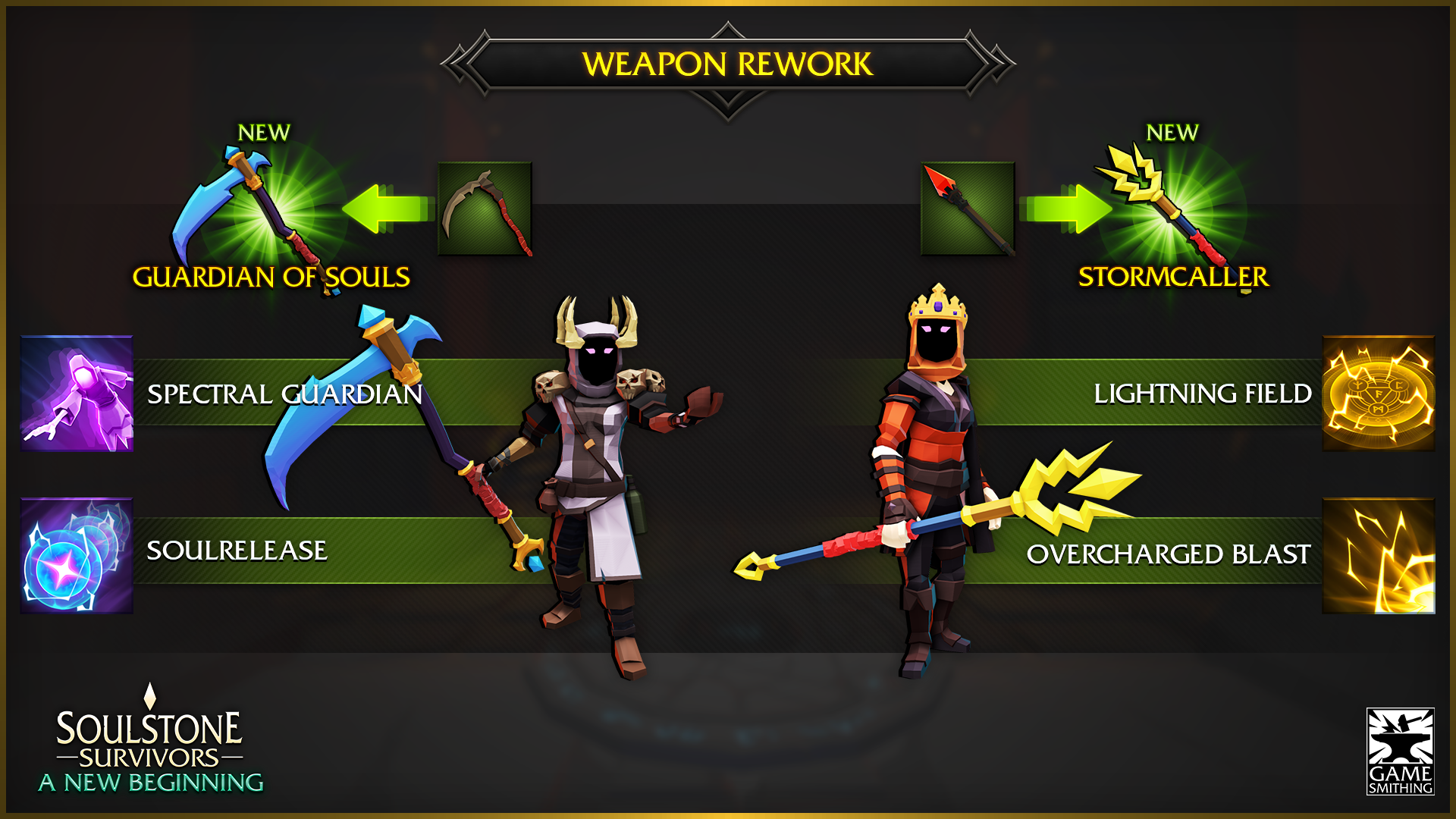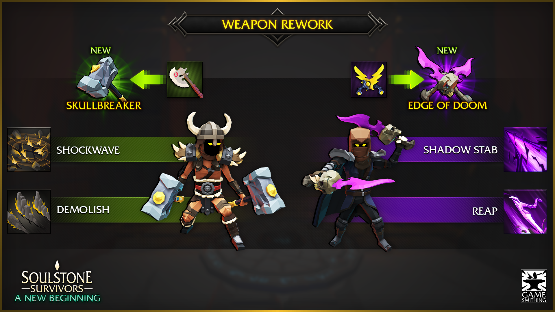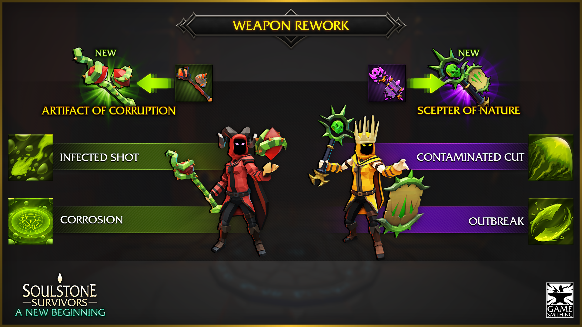 The [b]New Beginning[/b] update is here, and with it, we are bringing many changes and fixes to the game! The new update is bringing massive changes to the gameplay, adding a new character, element, weapons, skills, and much more! But before that, we want to invite you to participate in our Discord event called [b]Big Damage![/b] ➣ [b][url=https://discord.gg/gamesmithing][u]Join us On Discord[/u][/url][/b] to learn about it! Here is a short video that contains a lot of new mechanics: [previewyoutube=e_cDYpCv3LE;full][/previewyoutube] [b]Here is the full list of changes for this update:[/b] [b]New Character: The Monkey King[/b] - The first new character to join the game, the Monkey King is a master of the martial arts and has access to Slam, Earth, Holy, Electric, and Bomb skills, with 4 new weapons, 3 new runes, and his new ascension Twilight Harmony.