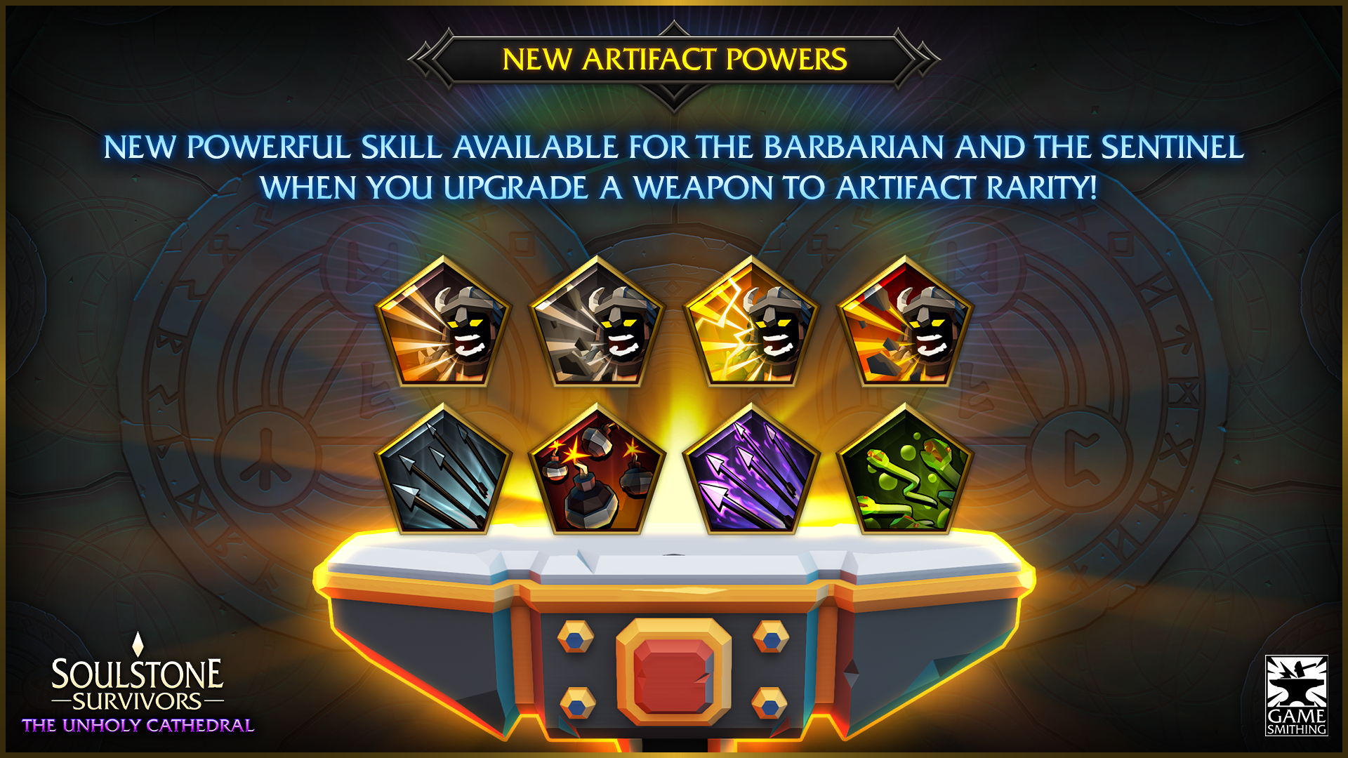 - The [b]Barbarian[/b] and the [b]Sentinel[/b] now have access to brand new powers with their Artifact Weapons! These powerful skills become available whenever you [b]upgrade their weapons to the Artifact rarity[/b] and can provide a significant boost to power! More artifact powers will be coming with future updates!