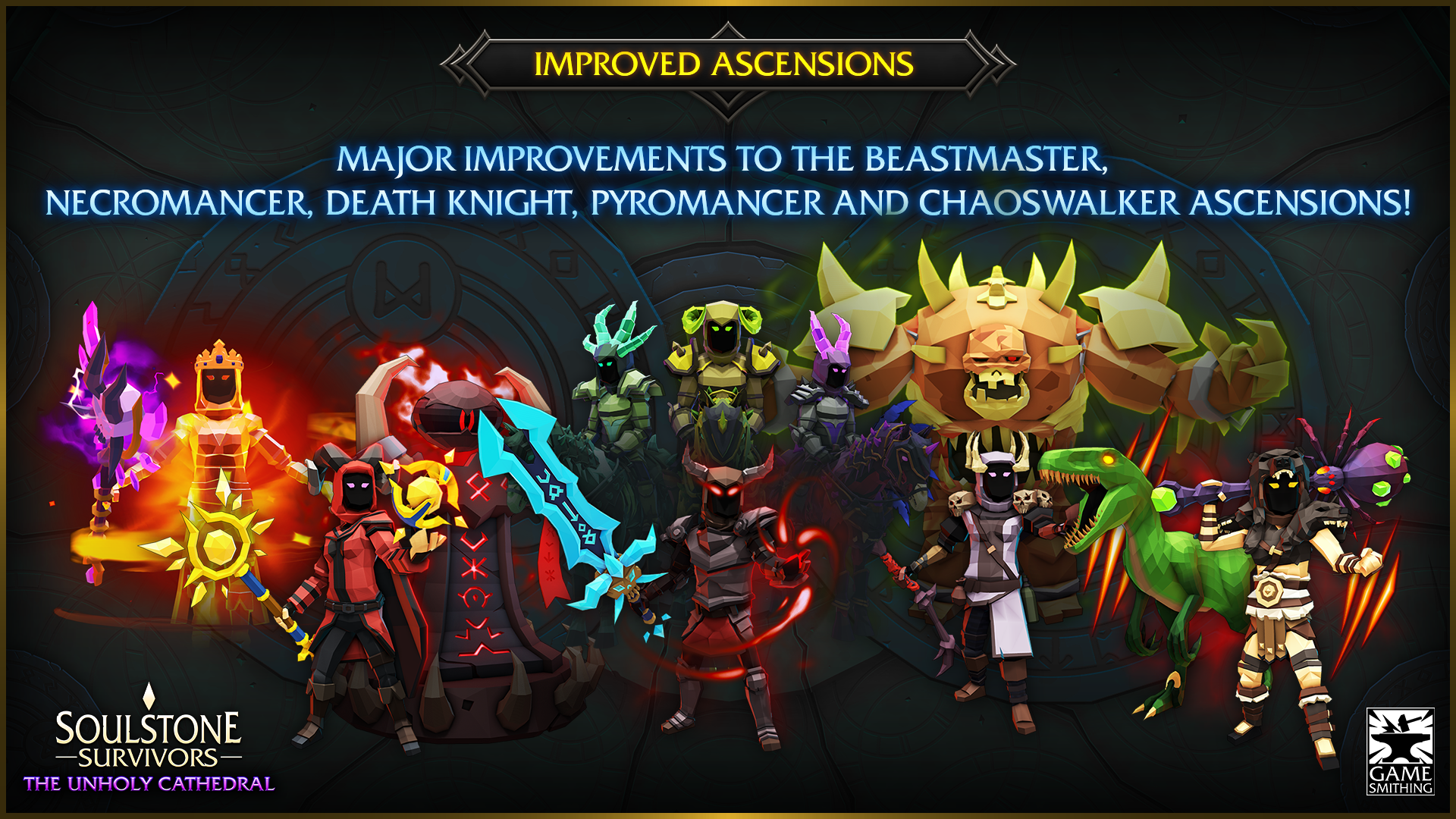 The [b]Unholy Cathedral[/b], our [b]12th major update[/b] is finally here, and this update brings [b]a lot of new content[/b] and improvements, including a [b]new game mode[/b], [b]major ascensions changes[/b] and a lot of [b]performance improvements[/b]!