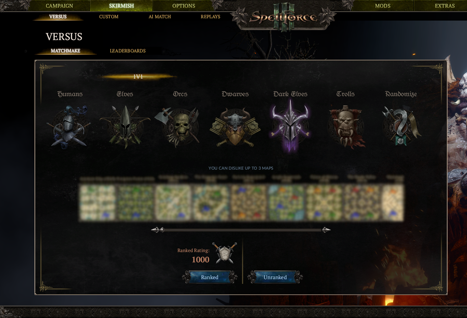 The game will automatically pick both opponent and map for you. The Ranked Map Pool consists of maps specifically tailored for competitive play in collaboration with our community. To make things fair, you can dislike up to 3 maps. These maps will have the lowest priority during automatic selection, but can still be chosen by the game if no match would otherwise be found within a reasonable amount of time.