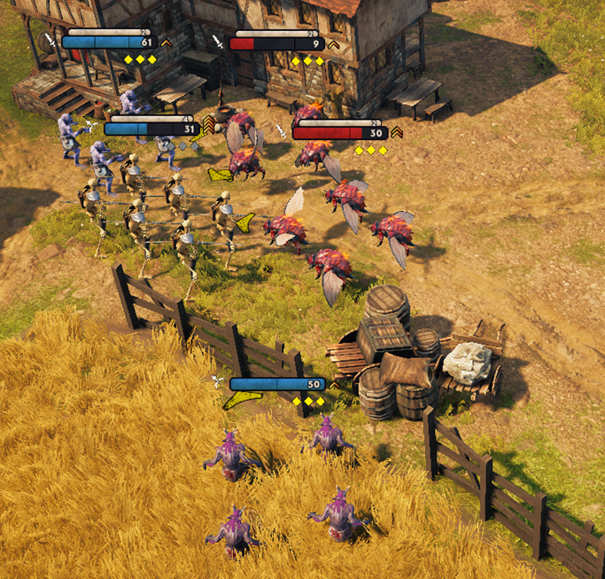 This opens up new tactical effects – smaller units surrounding a bigger one can effectively pin the big one down with repeated needle attacks instead of a simple exchange of melee strikes and players need to make sure they do not expose their frontline units to an enemy swarm.