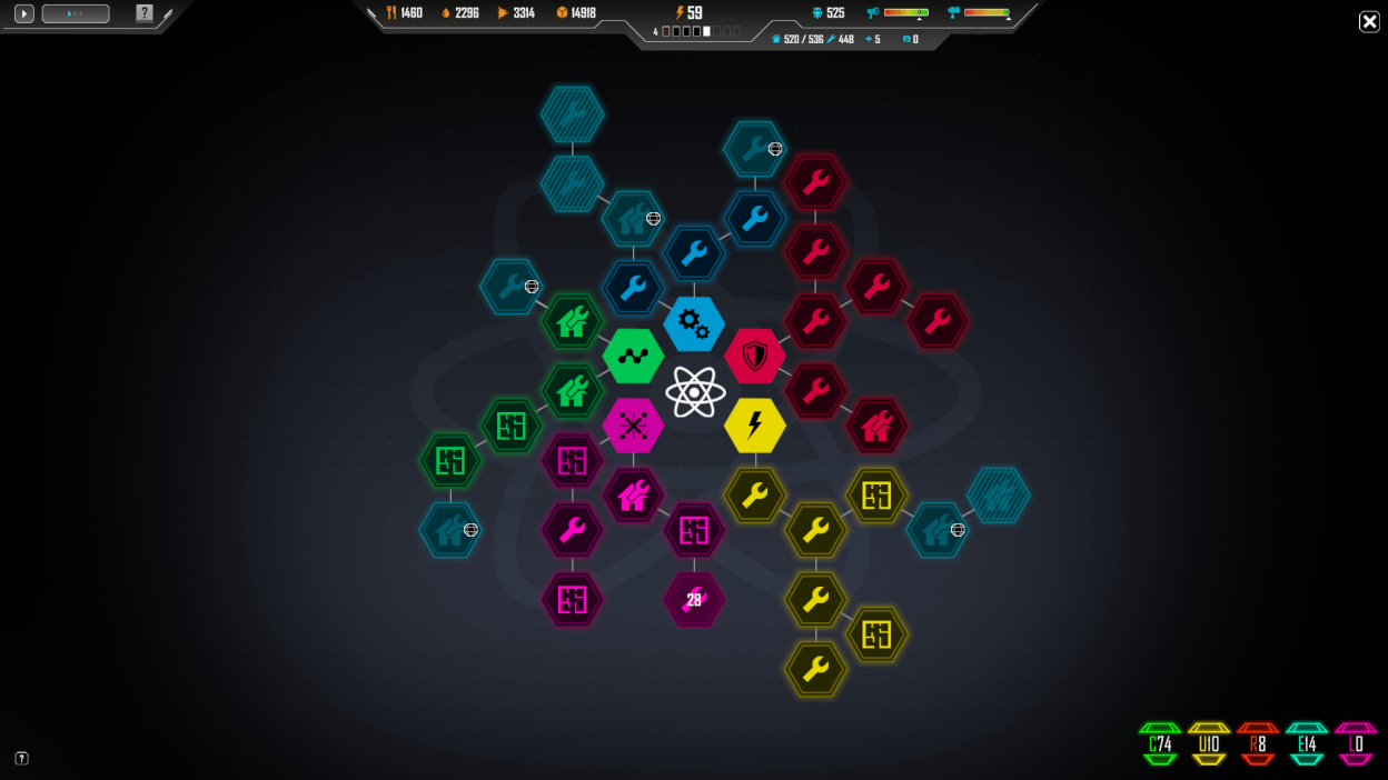 An additional change in the research area is the revision of the element mechanics. We have decided to distribute only five different element groups rather than different elements from each group in mineral clusters and use them for the prices of some technologies. The previous implementation of the element mechanics, especially the element conversion feature, presented many players with a hurdle they did not need. However, searching for specific elements on the world map remains relevant to game progress even after the modification of this mechanic.