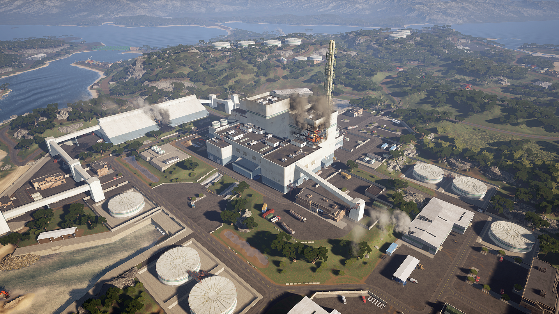 A large coal power plant constructed in the early 1990’s has become a strategic asset as it provides the majority of power to nearby mainland urban and industrial zones. The power plant and its surrounding campus support mixed infantry and vehicle game play. It will require heavy cooperation amongst squads if they are to hold the entire POI.