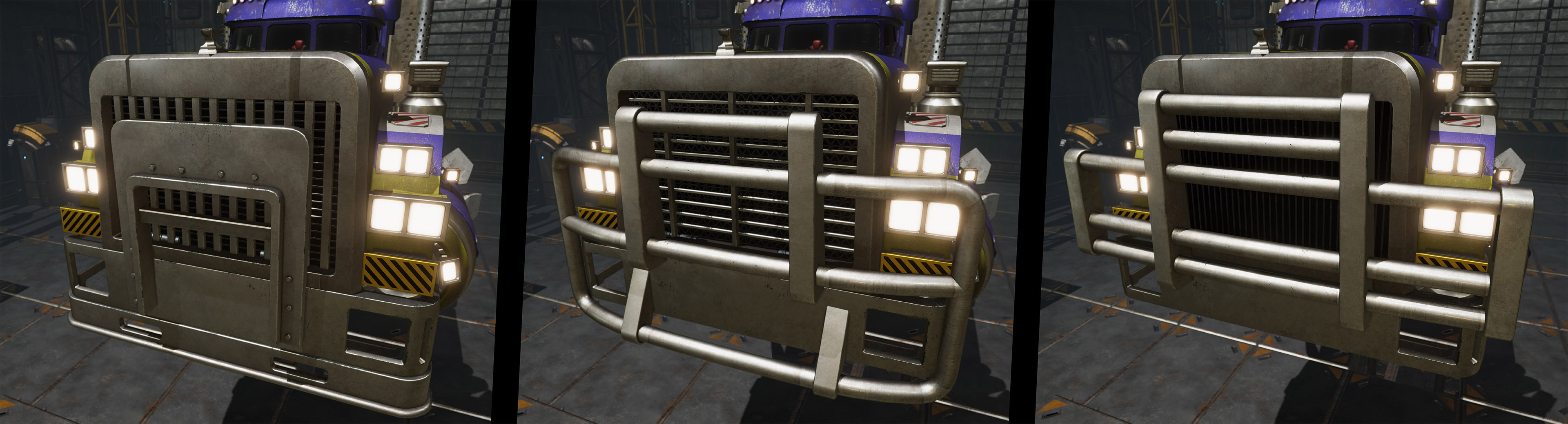 December also sees us roll out the [b]Heavy Duty Customization Pack[/b]. This will be our last truck DLC for a little while as we switch our new year focus to trailers, cargo and other exciting new content. We’d also like to take a moment to let you know that all of the DLC so far has been created in parallel with working on new features, bug fixes and balance adjustments. These customization packs have not impacted ongoing work and every sale helps support the continued development of new features and free updates for everyone! With that said, we REALLY like how this pack turned out. In fact, we went the extra mile for this one, adding multiple grille options and the ability to fully customize the paint job.