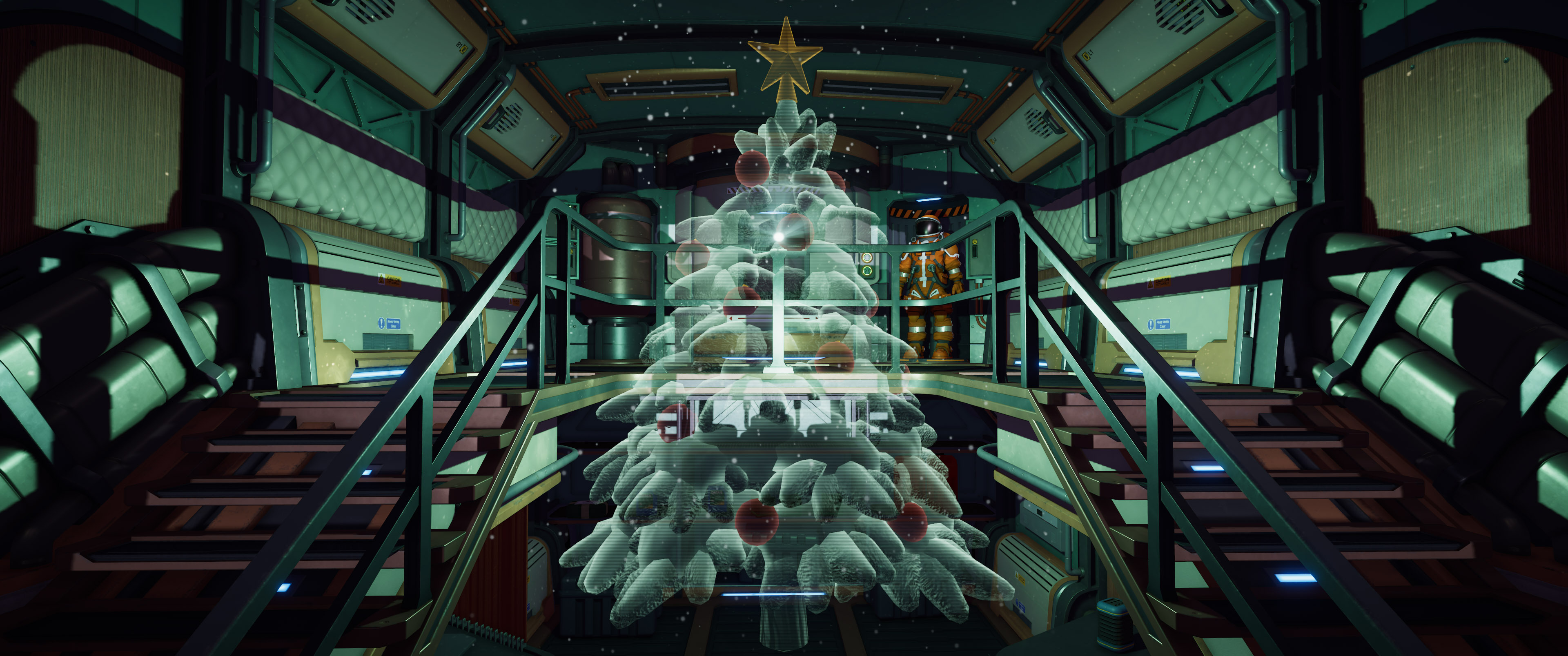 To celebrate this holiday season we’ve enabled the cabs holo projector… Those with a keen eye may have noticed this bit of tech sitting on the safety rails of the mezzanine floor. We’ve got lots of ideas on how best to use this projector in the future but for now it will fill your cab with a festive lightshow! This festive themed projection is available now up until [b]6th January.[/b]