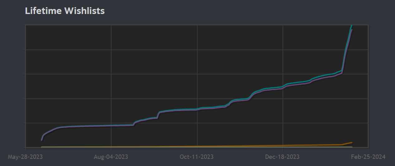 You might not realize it but wishlists are super important for indie developers and small publishers. Thanks to Steam Next Fest and the incredible response from players we saw a mind-boggling spike of wishlists during the event and gained a ton of new followers keen to keep tabs on the game.