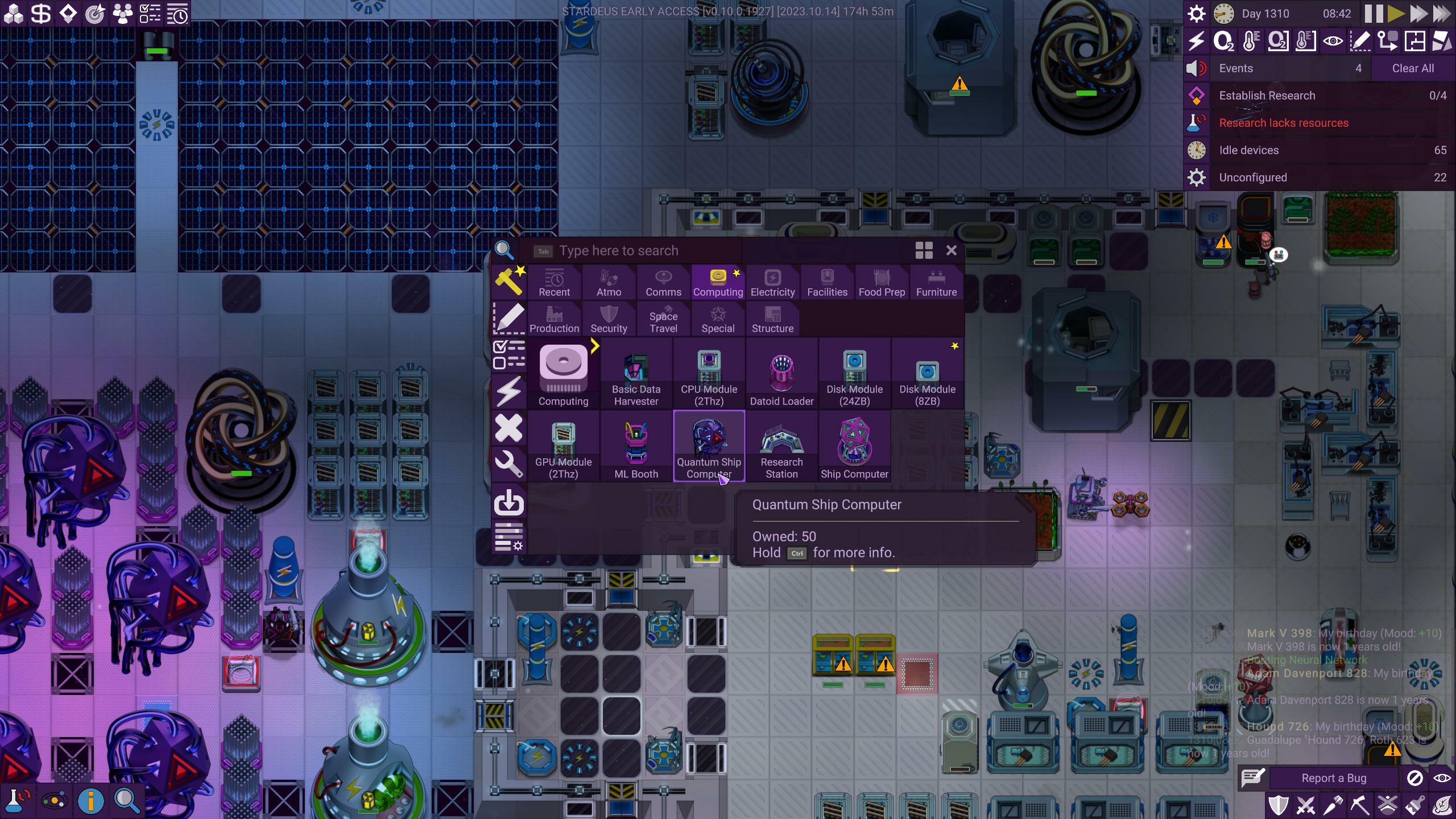 I could go on into more details, but this post is getting way too long, so I'll stop here. You can read the Changelog if you want to dig deeper into what happened in v0.10. I hope you will love the new changes, and please give constructive criticism if you don't. I am always listening and will correct the issues as much as I can. The road to version 1.0 is still a long one. Stardeus was an ambitious project from the very start, and now, after almost 4 years of development the ambition has not diminished. I am confident that I will be able to carry out the vision of Stardeus to the full extent, just give me a few more years and enough coffee! Your support - be it through reviews, word of mouth, or tuning into my development live streams on Twitch - is invaluable. Until next time! - spajusFollow the Development