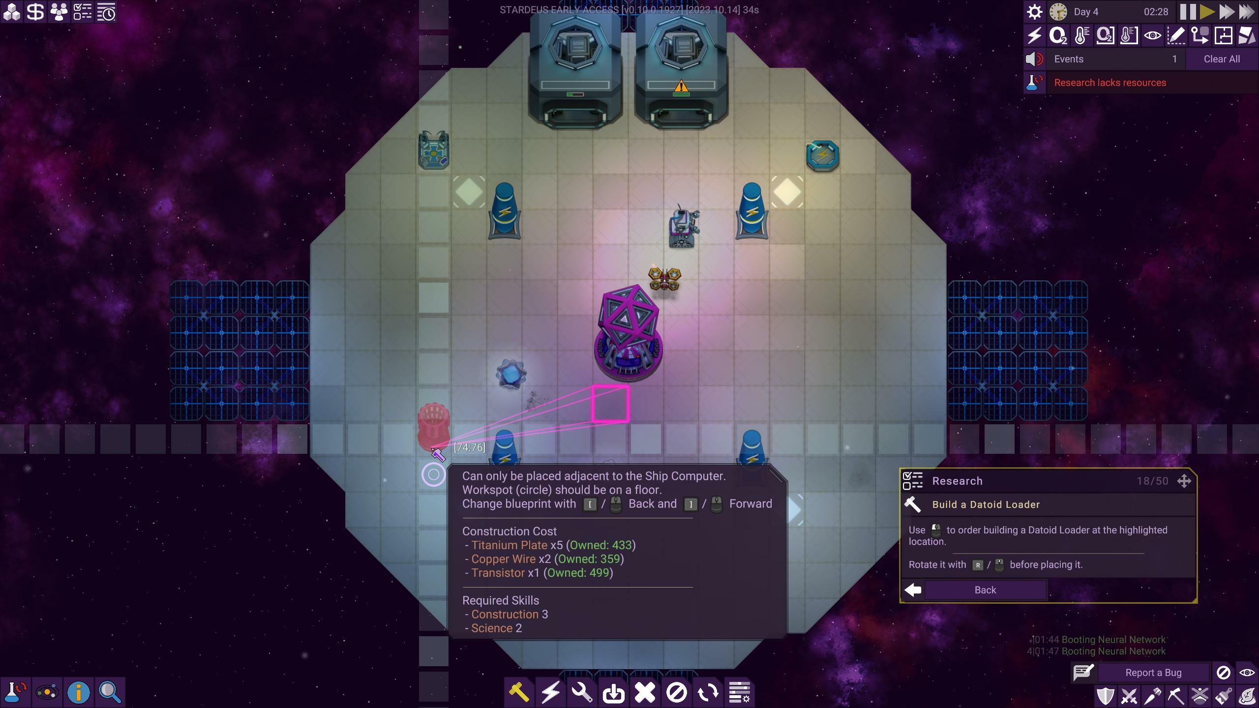 You no longer need to expend electricity to advance research. Research nodes unlock instantly on demand, upon crafting the required number of Datoids, a new research ingredient.
