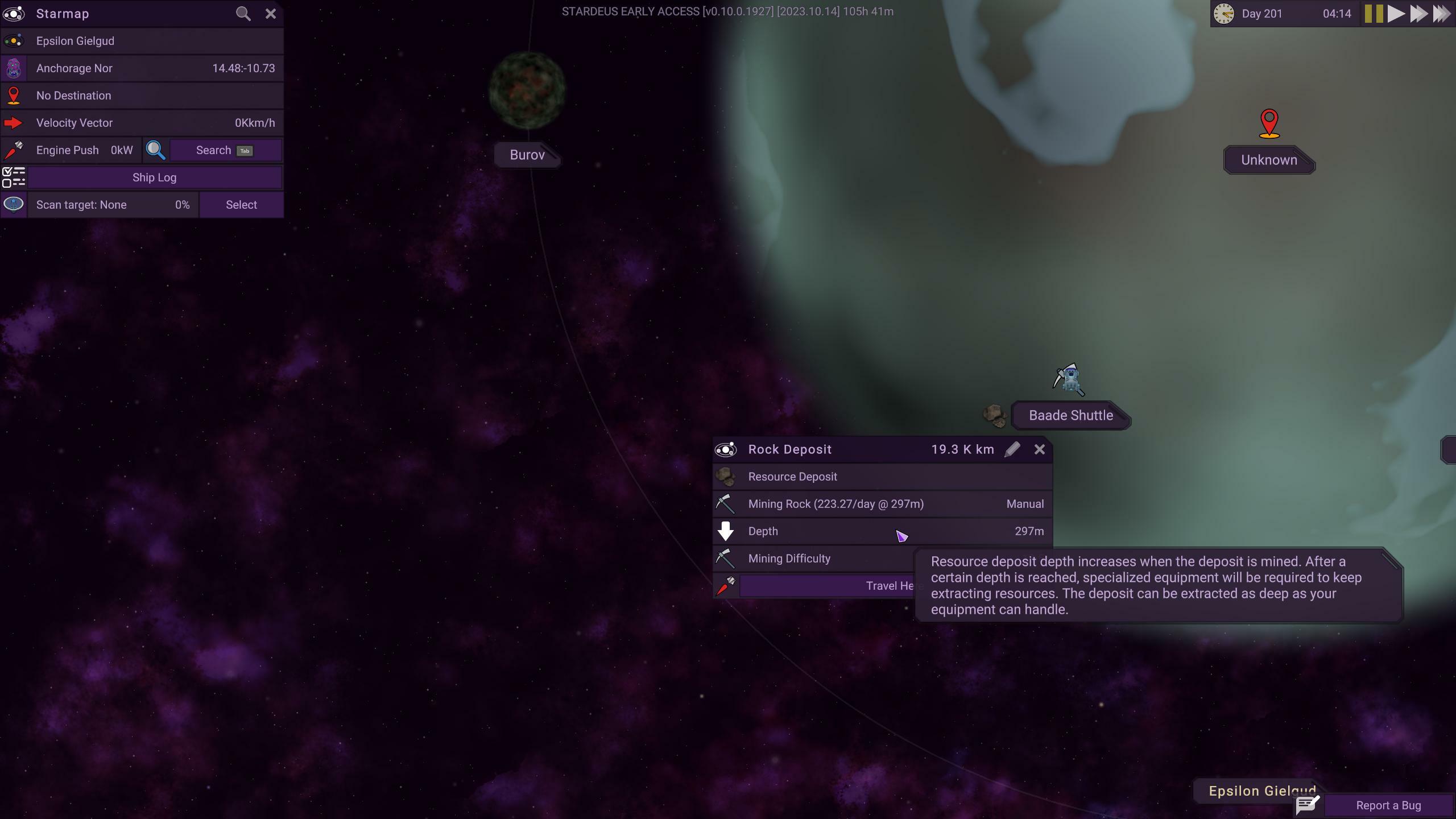 The current, third iteration introduces resource depth in addition to mining difficulty. Standard shuttle expeditions can reach depths of up to 2km, while AutoDrill Rigs can go as deep as 10km.