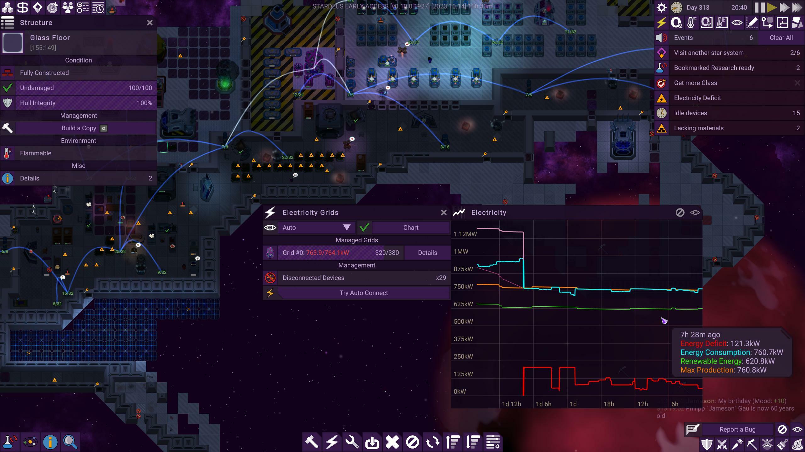 The charts have been refined for greater readability. The electricity grid chart now also displays renewable energy output, allowing you to see if your ship operates solely on solar energy.