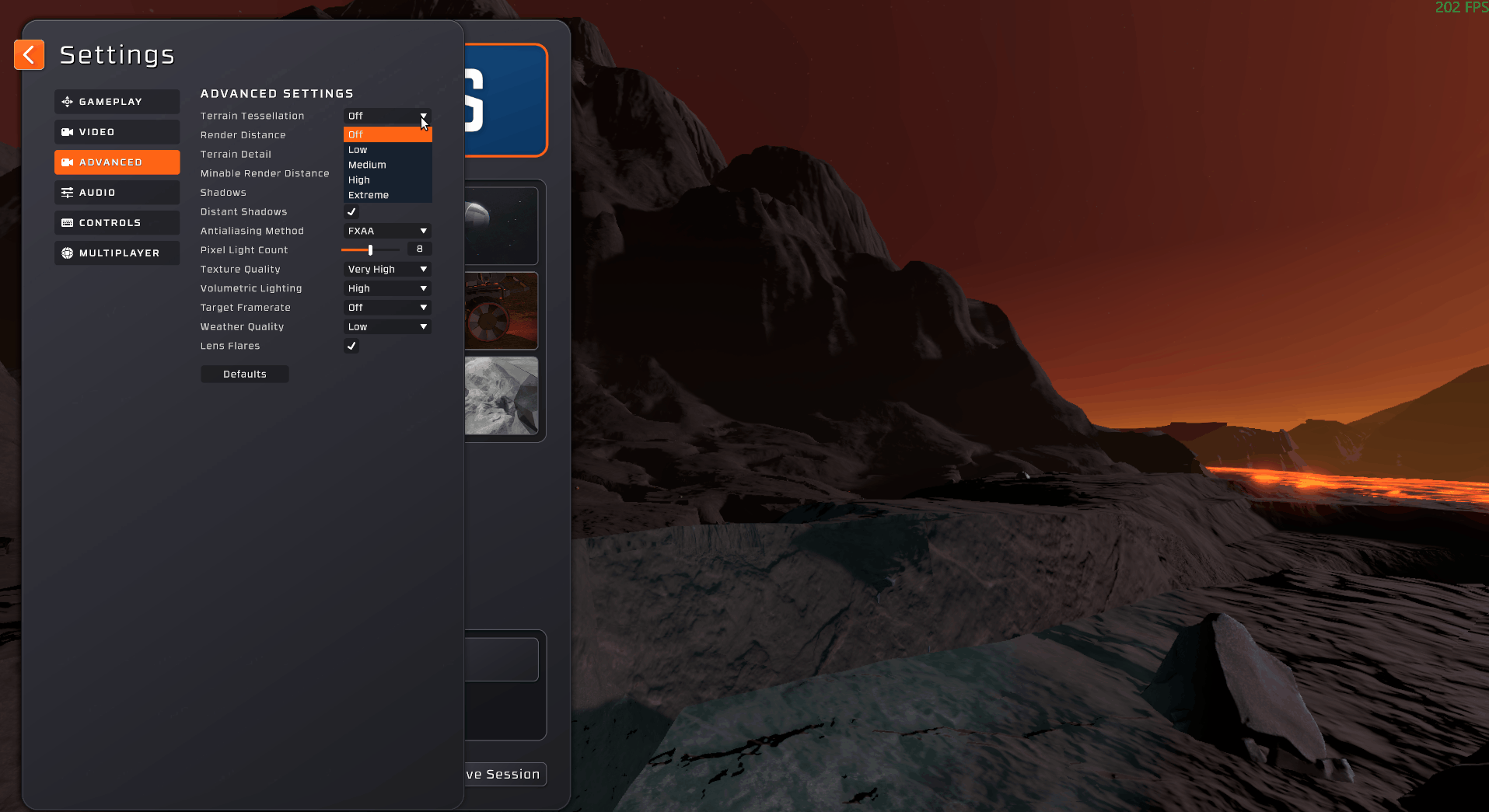 We’ve heard from many of you that you’re experiencing lower than expected fps with the new update, especially on Vulcan. We’ve done some optimisations under the hood to help improve terrain performance as well as exposed some new settings to give you better control when tweaking your performance.Terrain Tessellation