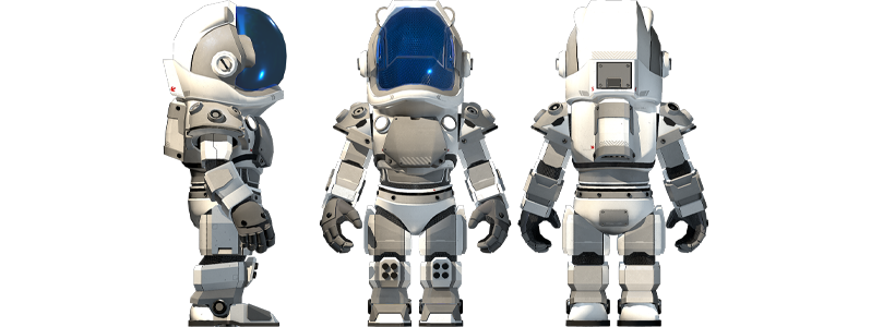 The HARM suit introduces new suit mechanics: it uses water cooling for superior thermal performance and provides strong protection during both storms and solar storms. However, it comes with trade-offs. You can’t wear a jetpack, and the reduced movement speed makes it restrictive. Even so, the protection it provides makes it a valuable option in challenging conditions.