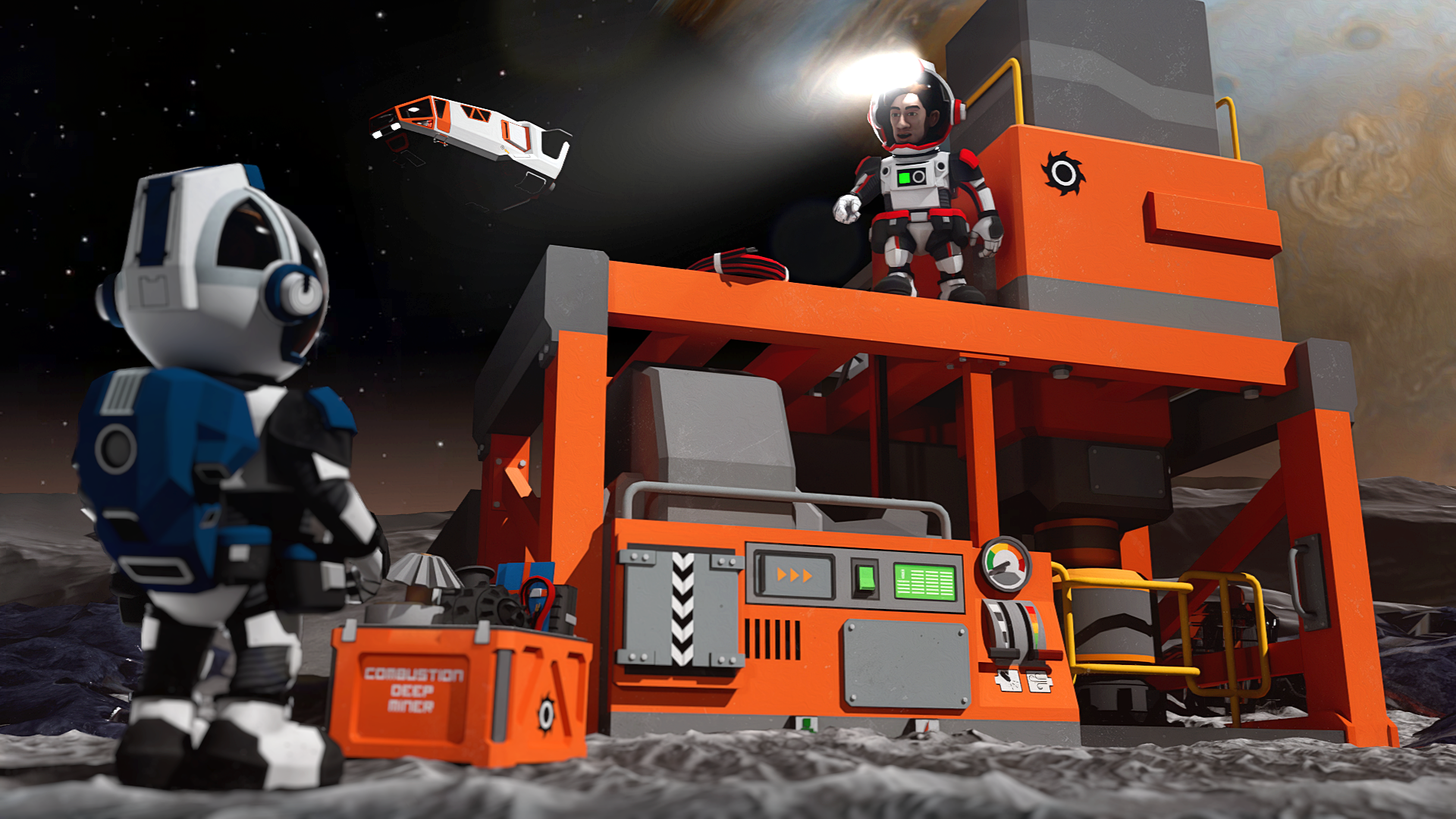 Combustion Deep Miners are a faster, higher-tier version of the deep miner that runs on a fuel mix instead of electrical power. They ramp up and down like the combustion centrifuge, rewarding steady operation with significantly higher mining throughput.