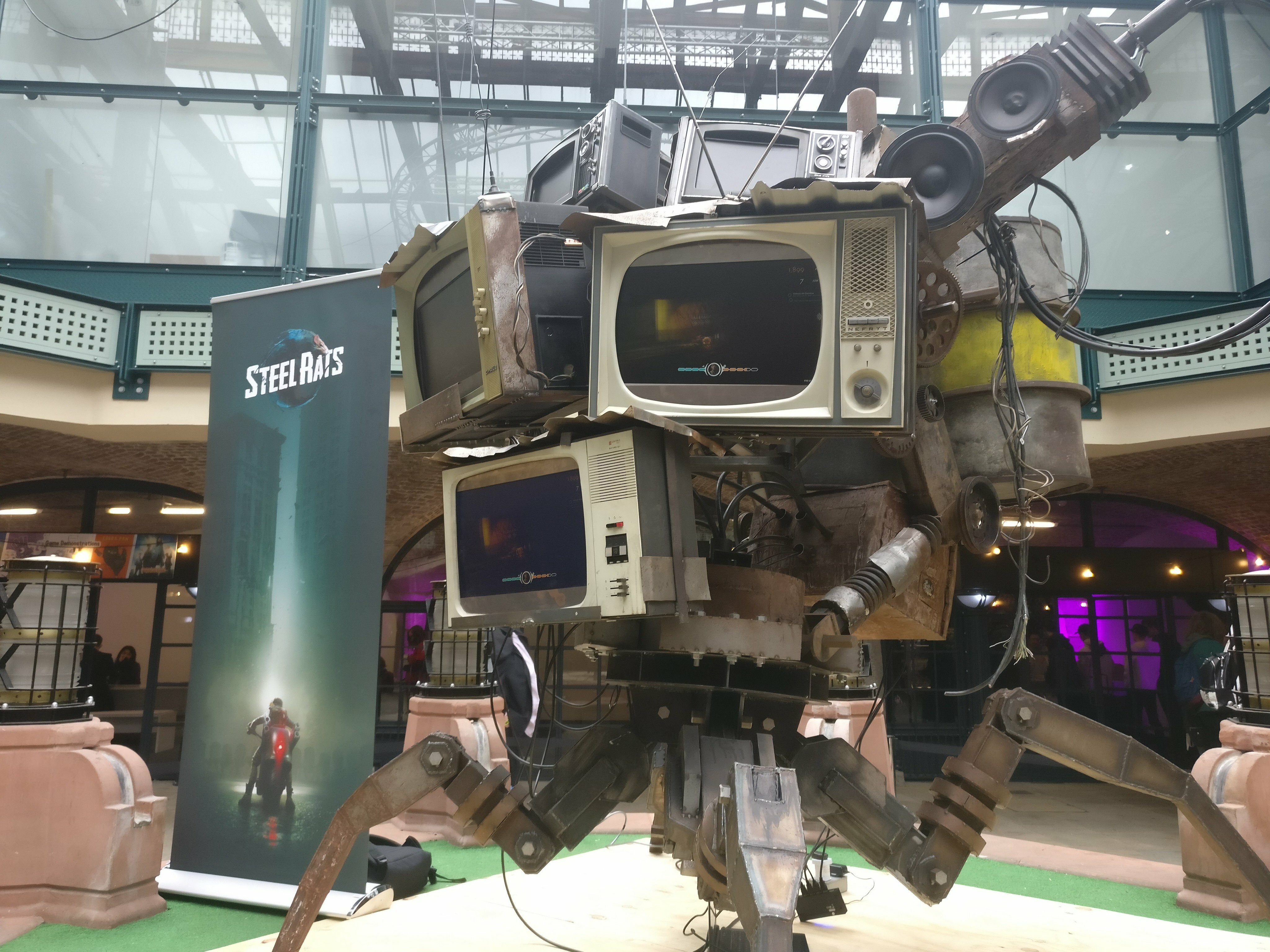 The process of ideas on paper, to pixels on the screen (or in this case, giant pieces of steel at an expo!) is long and always changing. Think of it like water going into different containers. Sometimes the container is shaped like a human stealing robot, other times it's a multiple TV headed metal beast!