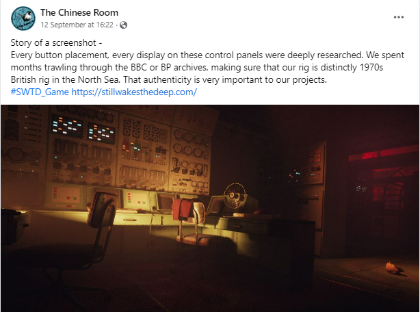 → Working with two major announcements at once It sure has been a busy time here at The Chinese Room’s comms team. In the last month the game also participated in the Xbox showcase, platforming the people behind the screen making the actual game, resulting in a Worldbuilding mini documentary that enriches the player with more insight into what we’re crafting. [previewyoutube=2-zKU2pjq-U;full][/previewyoutube] We’ve participated in [url=https://www.youtube.com/watch?v=bBNe3V-Wir4]IGN’s Fearfest[/url], our Senior Designer Jade Jacson has travelled to Gamescom where the game journalism community was seemingly very impressed with what they’ve seen thus far.