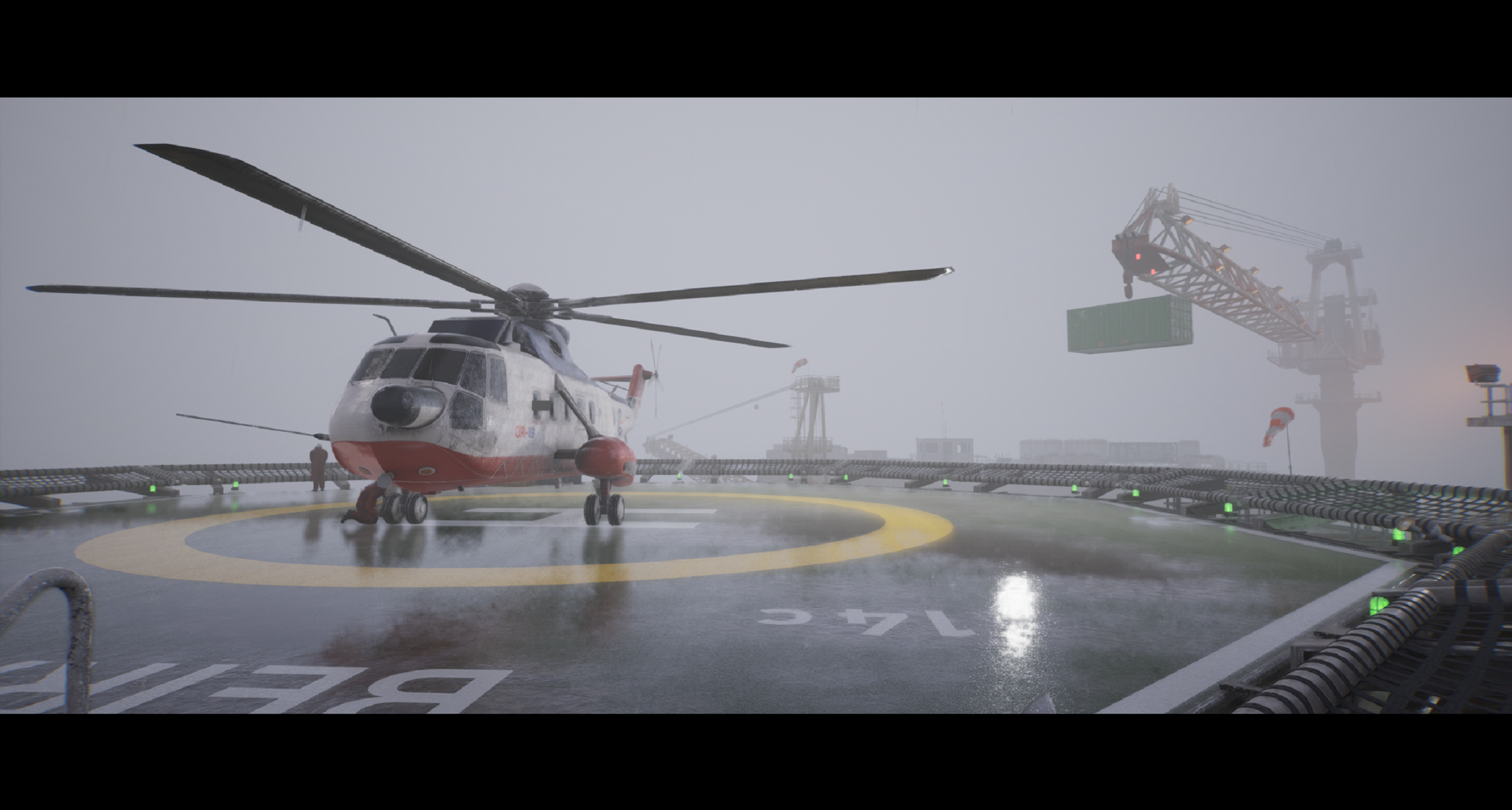 [b]→ [i]Dreich[/i]: adjective. (Scottish English) – Depressing, miserable or cold [/b] The word [i]dreich[/i] is commonly used to describe the weather in Scotland when it’s just plain miserable. Grey clouds, rain, wind, and no sign of sunlight. It’s also a word that describes a feeling and that is exactly what we wanted to portray to players in [i]Still Wakes The Deep[/i]. Have you ever looked out of the window and thought to yourself “Yeah, I really don’t want to go out there in the cold…” That’s dreich. Unfortunately, Caz, our main character, doesn’t have that luxury. He and the rest of the crew on board the Beira D oil rig are used to this kind of weather in the North Sea, so we wanted to portray that as much as possible so that the player can feel how miserable it might be out there. Another day on the rig You wake in your bed, the light from the overcast sky barely reaching in, the weather ever-present. It’s overcast and the weather is horrible, so we tried to establish that feeling early in the game. To get that sensation that the weather was at our door, outside the thin walls of the rig, the rain and wind beating on the windows trying to get in. As the game progresses, the weather becomes stronger and more prevalent, affecting both the rig and Caz on their journey through the events of SWTD. As you navigate the oil rig you’re led through the dim interior by softly penetrating light from the sky, and the internal lights of the rig. You push open the heavy exterior door onto the deck, the sound of a working oil rig, the weather ever-present. You’re outside, it’s grey, and feels like the weather has taken all the colour and joy out of the surroundings. It’s raining and every surface is wet, the surroundings reflecting from the puddles. The colours, lighting, and VFX all play a part in how SWTD is rendered. We wanted to make something that looks natural and cinematic.