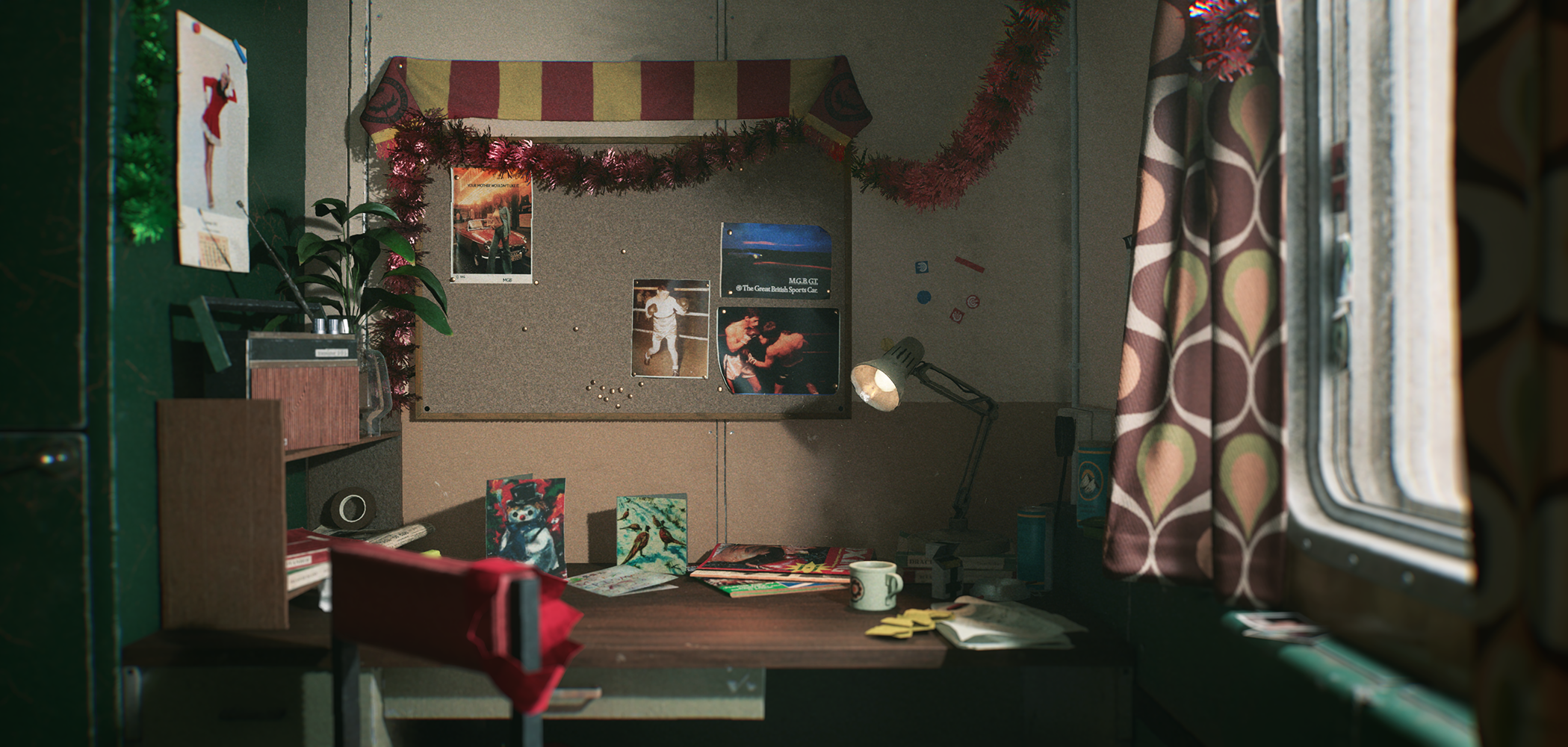 Now the latter, the beautiful yellow and red scarf hanging at the top, is not just any scarf we conjured up for the sake of adding there. As you know, authenticity is always key to The Chinese Room’s games, so when we find opportunities to mesh our creations with the real world – we try and make it happen.
