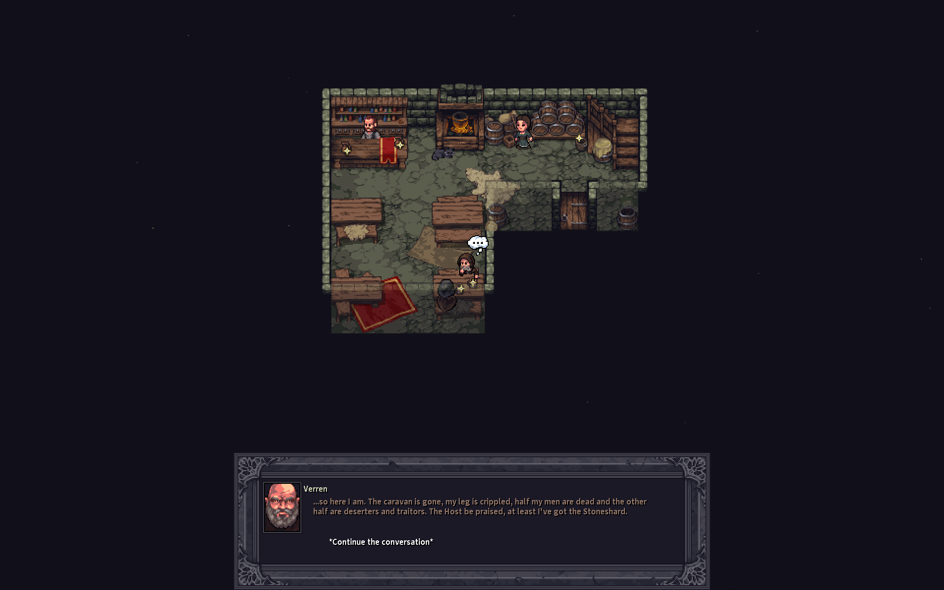 As some of you may not know, Verren isn’t the main character of our game. He only comes under your control in the Prologue. In the main game, however, he is an employer and a mentor figure to your character.
