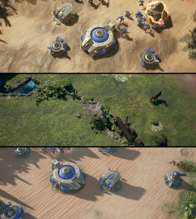 After listening to all your feedback, we have done a visual pass on the environment of our maps. We have made several changes, including updating many of the terrain textures. Lighting angles were also changed to make the terrain more readable and pop. This accentuates the normal maps and helps add shine to the terrain.