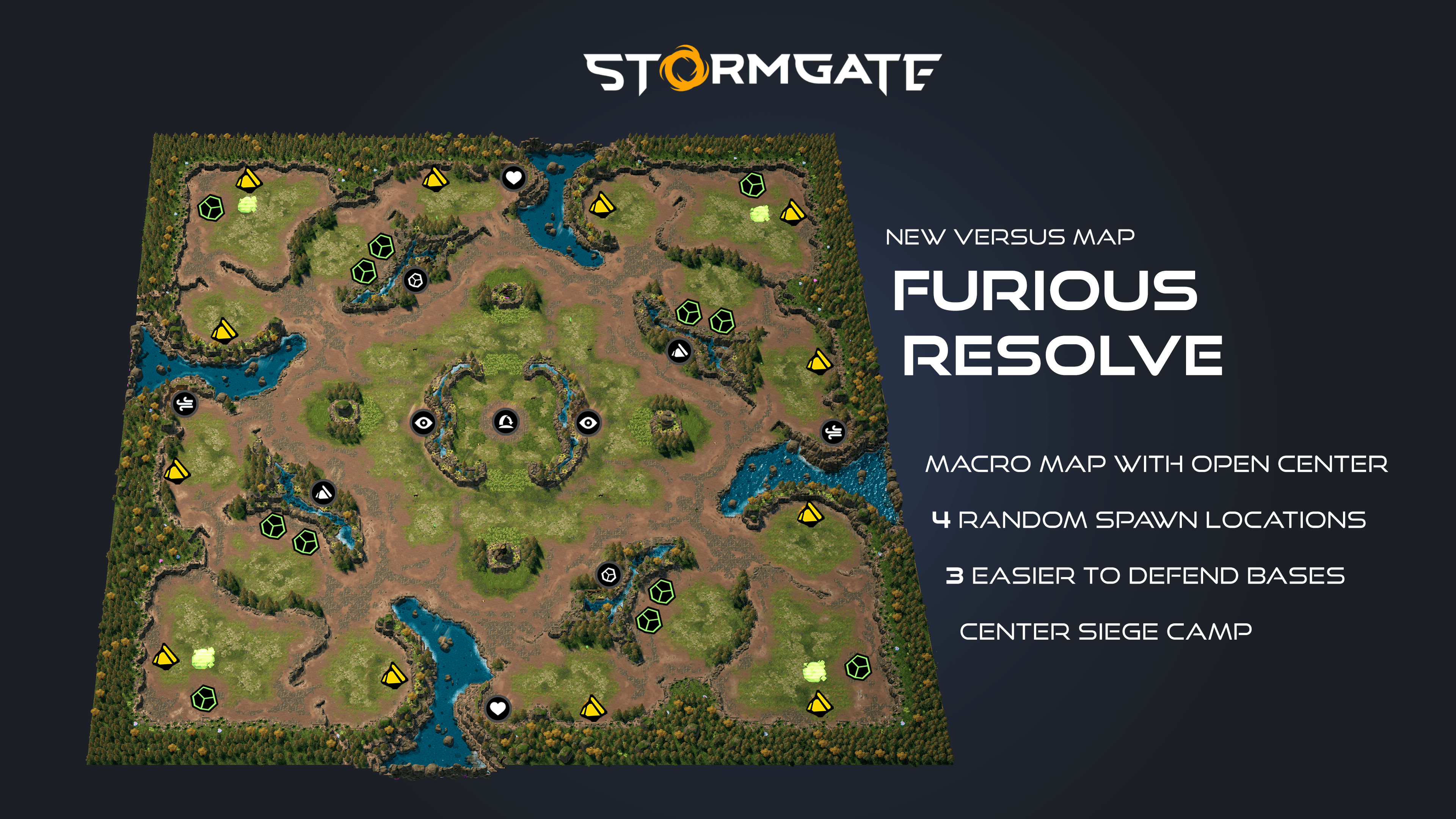 - Introducing our latest 4 spawn macro map. Furious Resolve features more easily defensible natural expansions encouraging longer games.