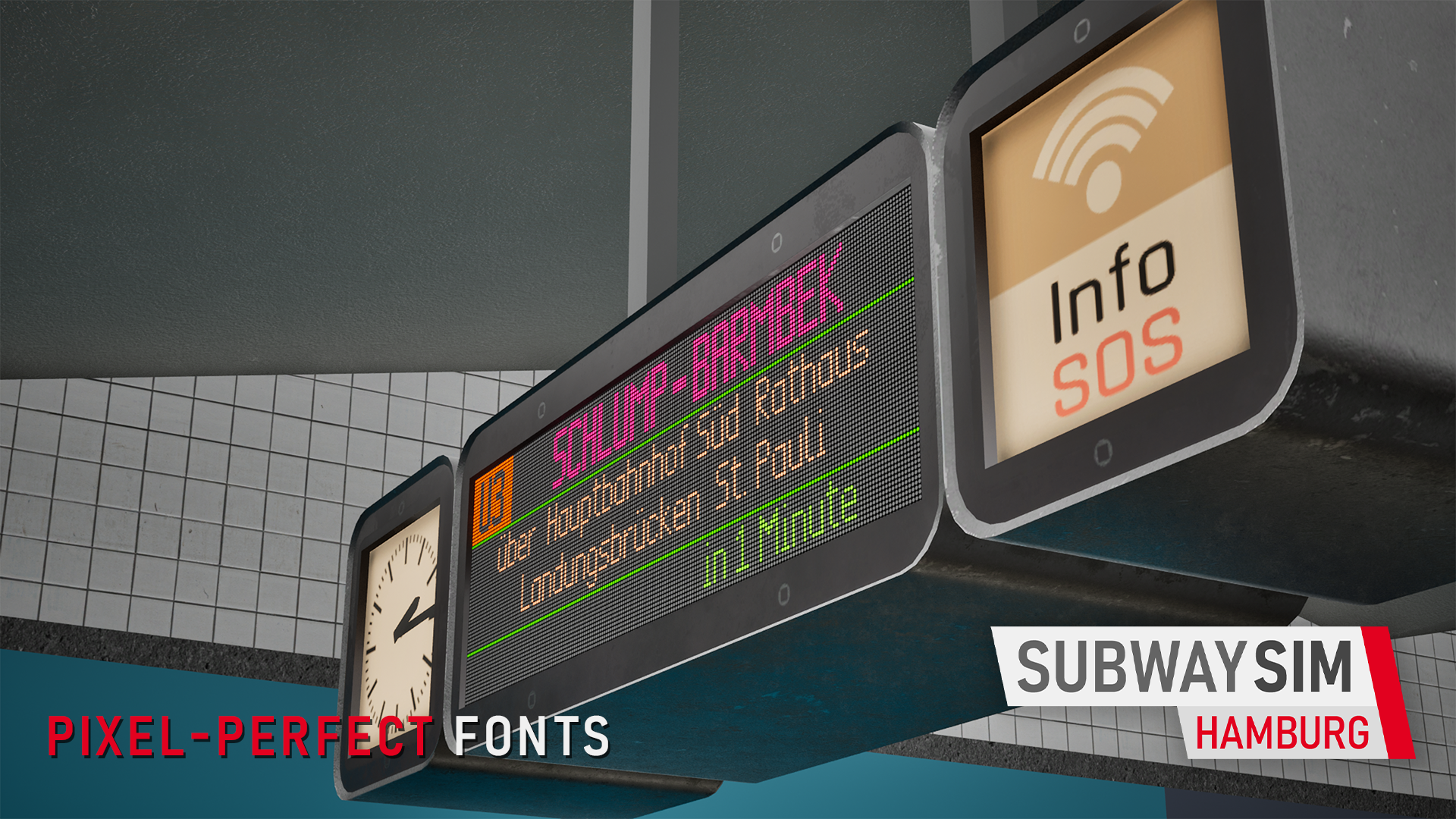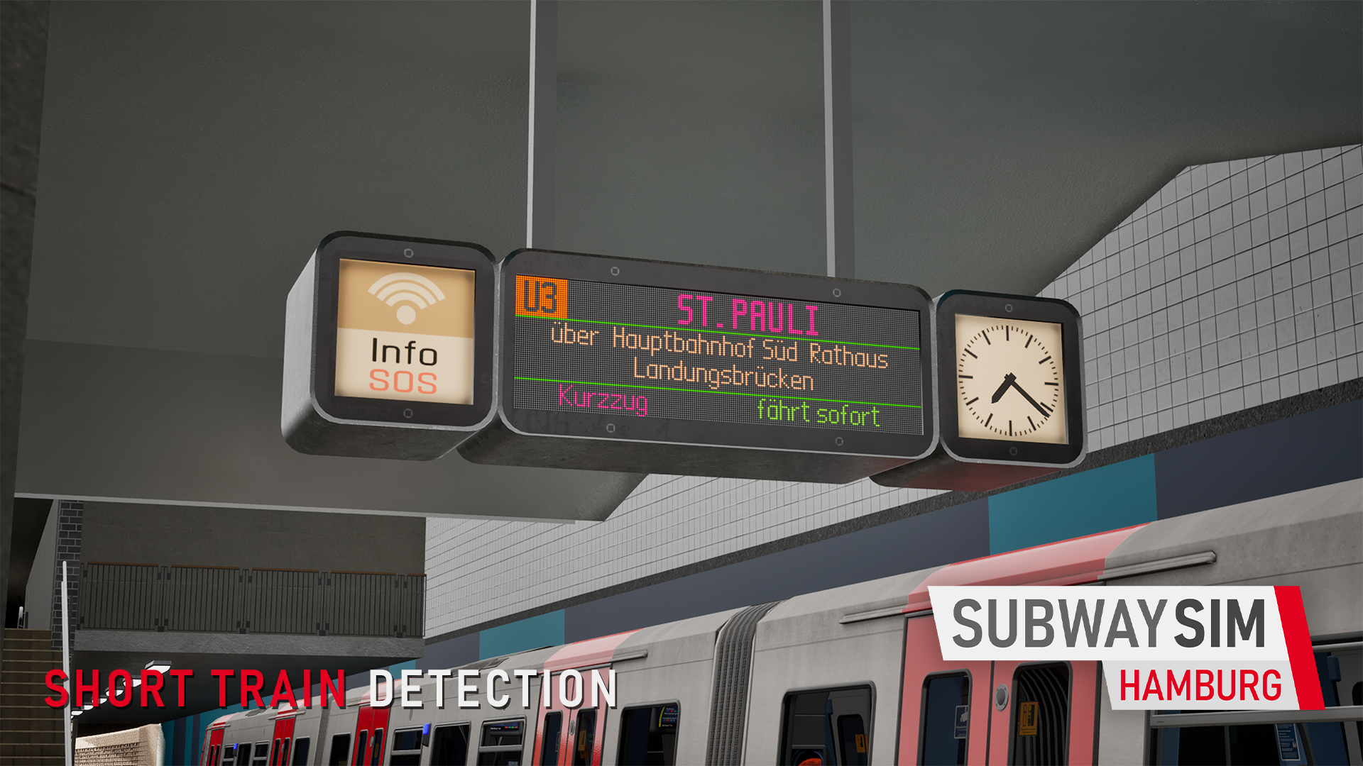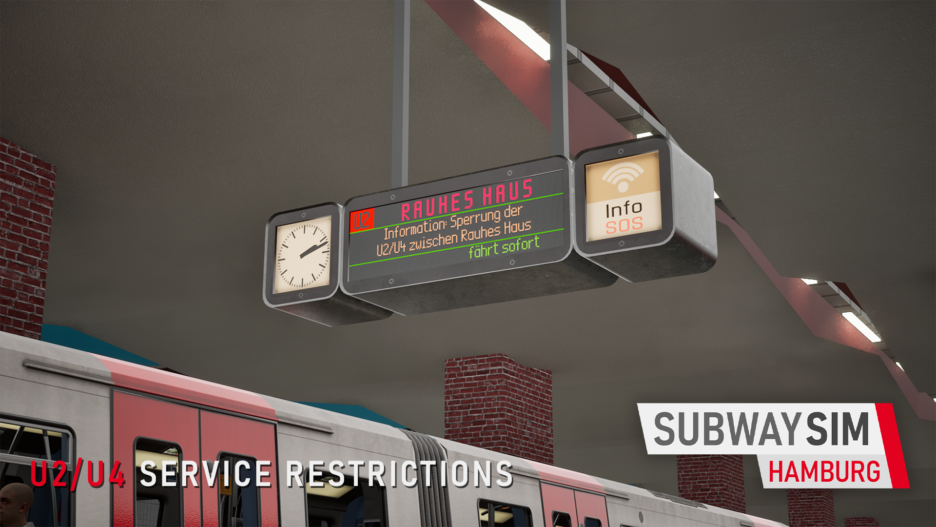 In addition to the graphic aspects, the functionality of Hamburg's platform displays should not be underestimated. The displays can show all kinds of different texts - and of course they do so too in SubwaySim Hamburg. One example for this is the current [b]closure of the U2/U4 lines until April 2024[/b], which is also resembled in SubwaySim Hamburg until then.