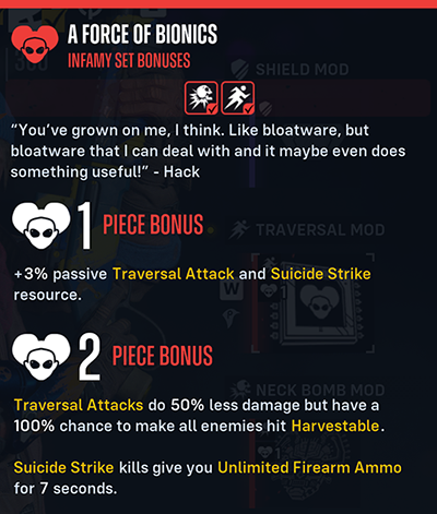 We’ve loved seeing players experiment with weird and powerful builds as they climb higher and higher up the Mastery Levels in End Game! One development we’ve particularly enjoyed was outlined by MrJay in a fantastic video they made recently highlighting the power of Hack’s Infamy Set Bonus: A Force of Bionics!