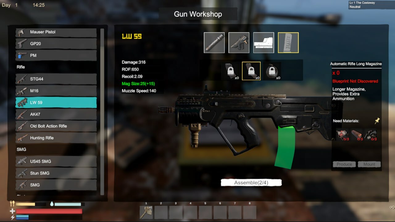 - Gun Assembly: We've introduced a new gun assembly system where you'll need to recycle broken guns to obtain gun component blueprints, including those for crafting gun barrels, magazines, and stocks. With these blueprints, you can then craft and assemble new firearms.