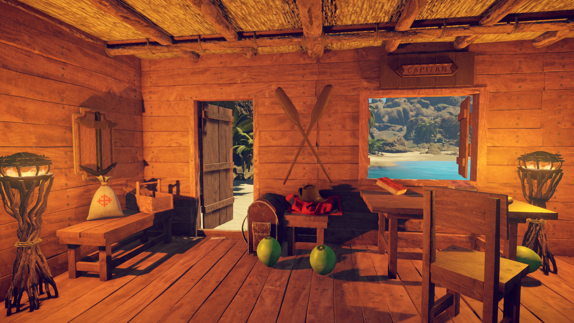 - [b]More decor blueprints![/b] The list includes chairs (and the ability to sit on them) + a table, a bench, and a stool, as well as several items from Santiago: a wall anchor, a captain's plate, and ship paddles.