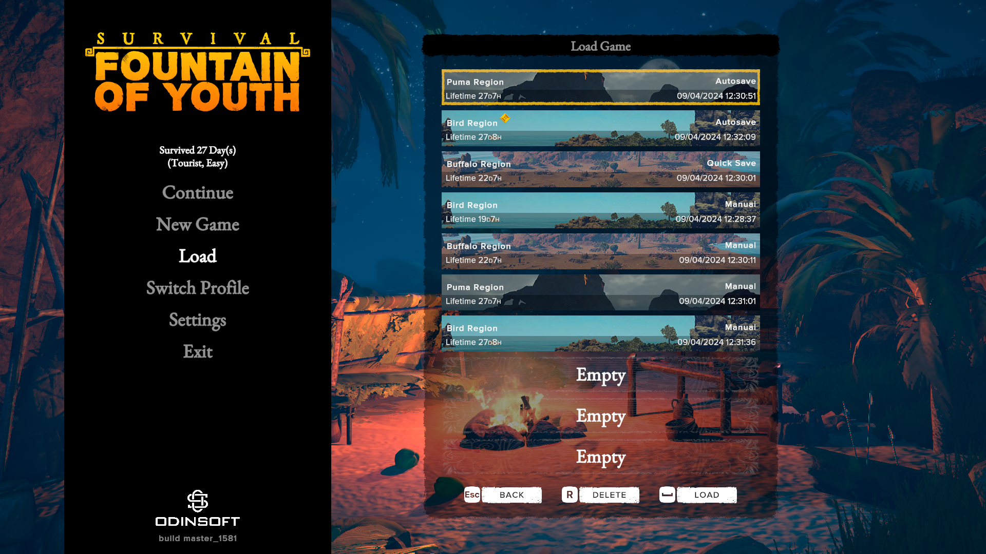 The long-awaited improvements to the saving system have come! There are up to [b]four profiles[/b] as separate games you can simultaneously play with each one having [b]10 saving slots[/b]. You can save and load them on demand (except for the Iron Man mode).