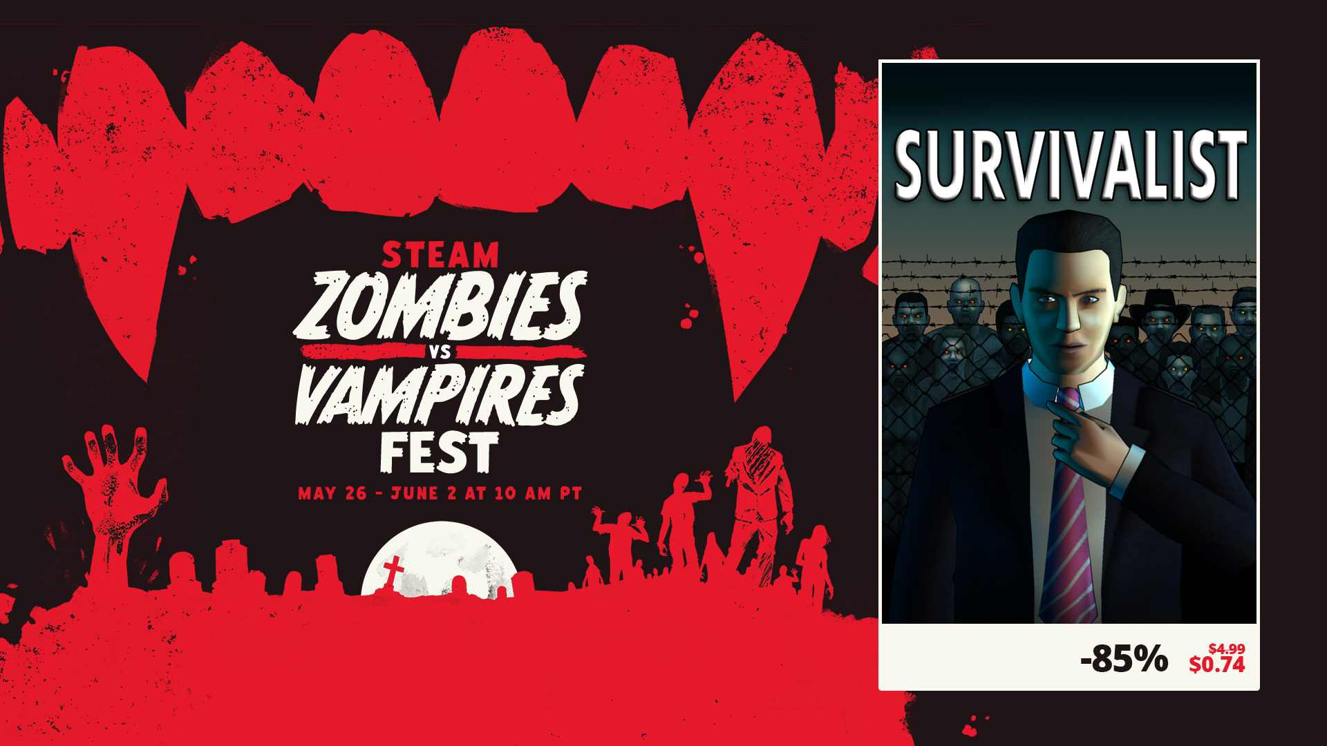 Well actually that happened exactly one month ago yesterday, but with everything going on around launch I forgot to post about it on here, the news page of the game that started it all! Oops. In case you weren't aware, [url=https://store.steampowered.com/app/1054510/Survivalist_Invisible_Strain/]Survivalist: Invisible Strain[/url] is the sequel to Survivalist and it has much better graphics (imho) and a ton of new features :) [previewyoutube=JdSpLKFL8fk;full][previewyoutube=JdSpLKFL8fk;leftthumb][/previewyoutube][/previewyoutube]And finally, it's the Steam [i][b]Zombies vs Vampires Fest[/b][/i] this week!