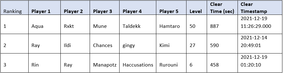 We are glad to announce the winners of the World and the Regional Dungeon Challenge: