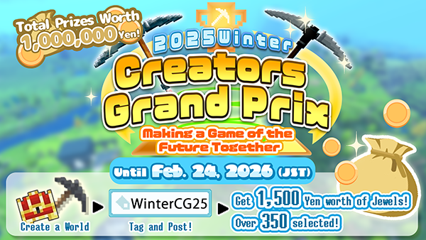 We are pleased to announce that applications for the game creation contest "2025 Winter Creators Grand Prix -Making the Future of Games Together-" will open on Friday, December 26, 2025, with a total prize value of 1,000,000 Yen.
