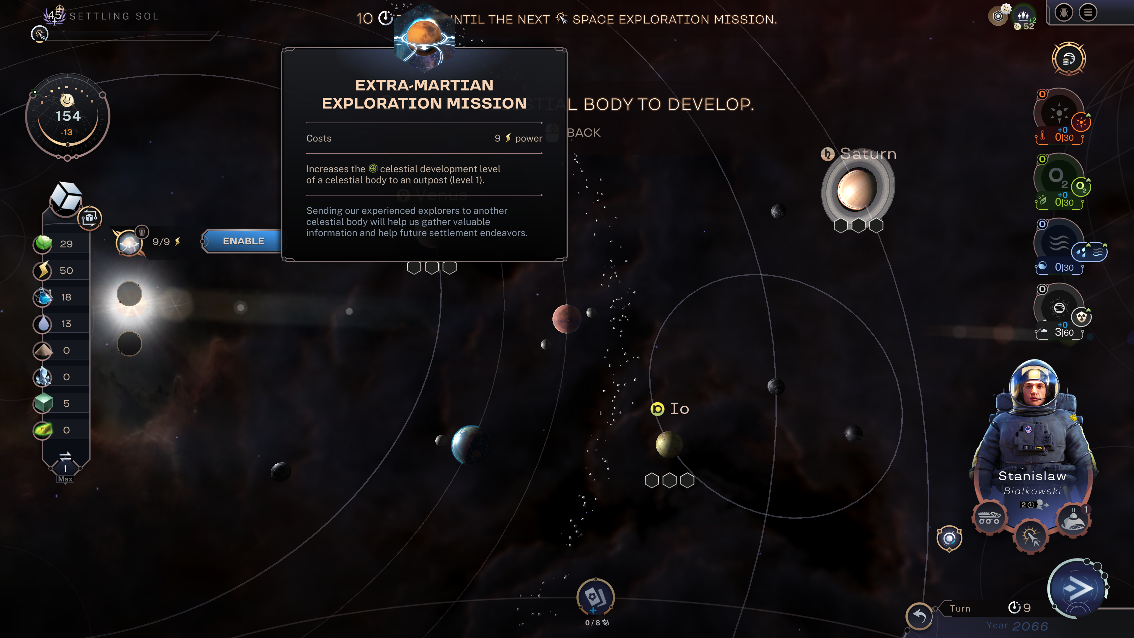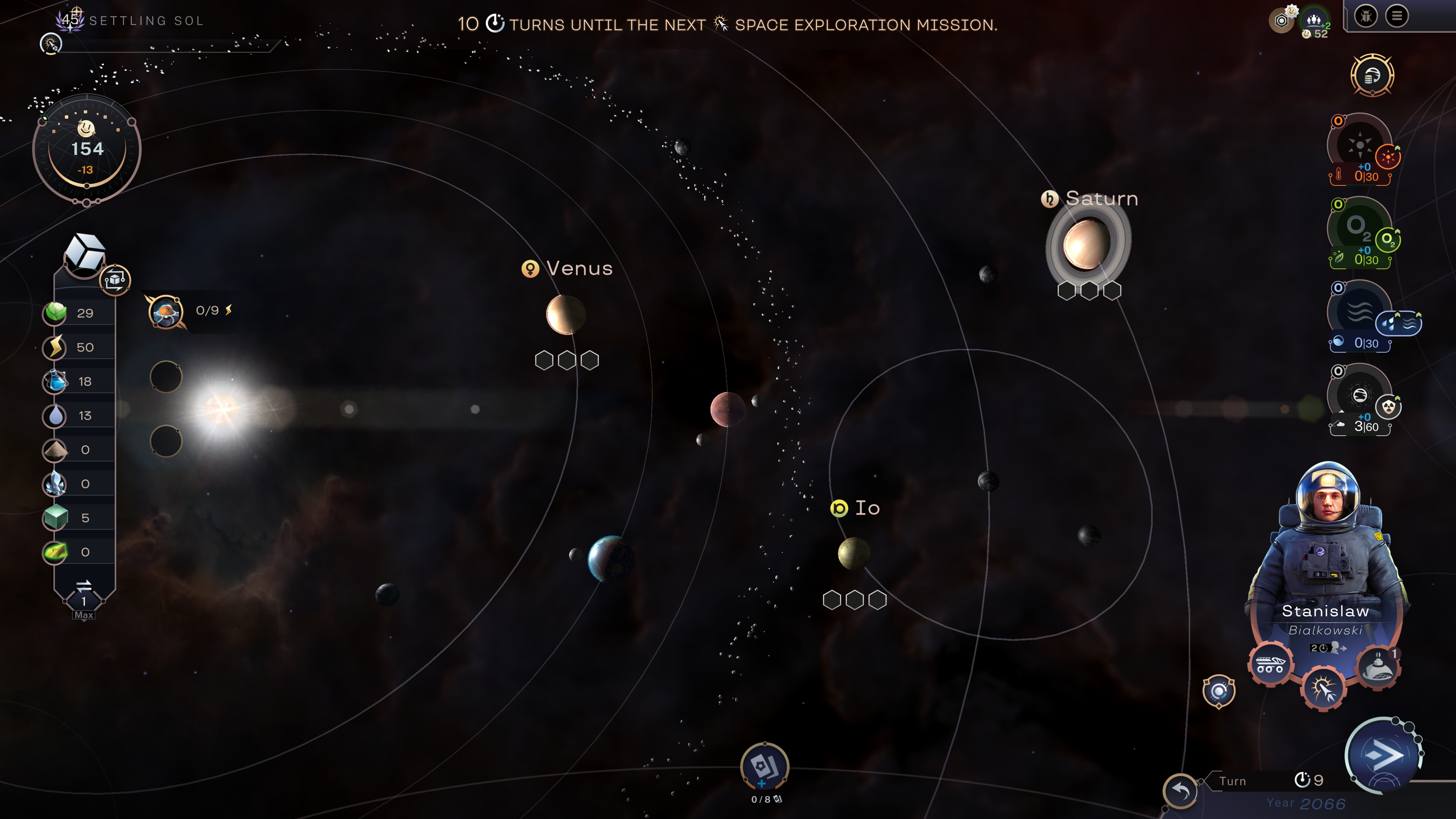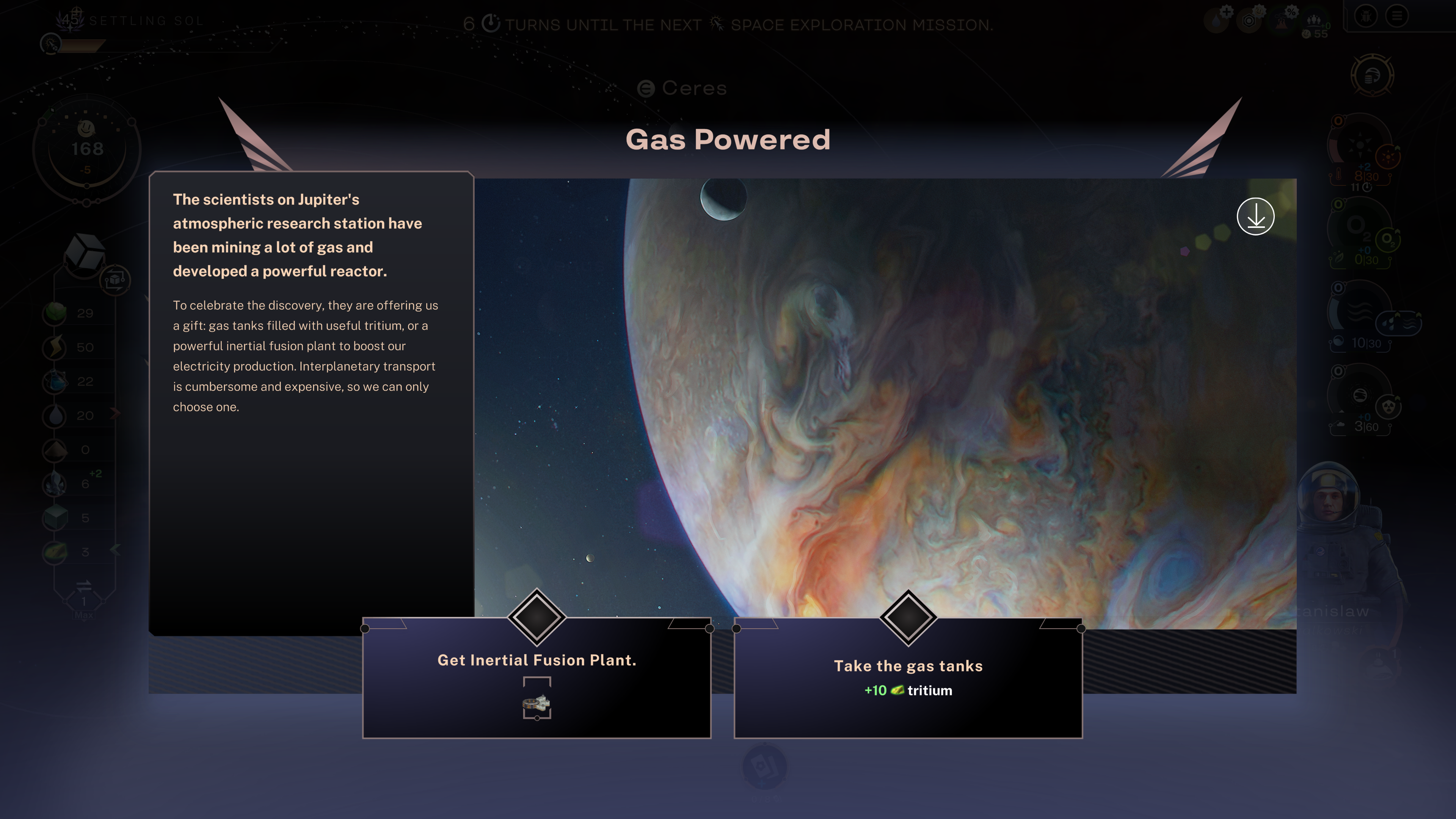On set turn intervals, you’ll receive a “space exploration” event, in which you can choose from 3 celestial bodies to explore. You can explore more celestial bodies by constructing observatories or by undertaking a space exploration mission with one of the new leaders.