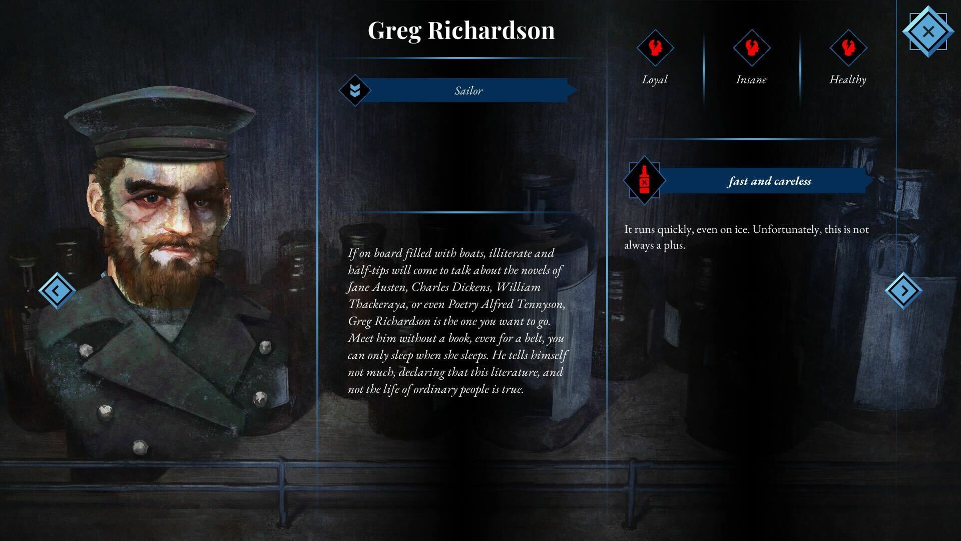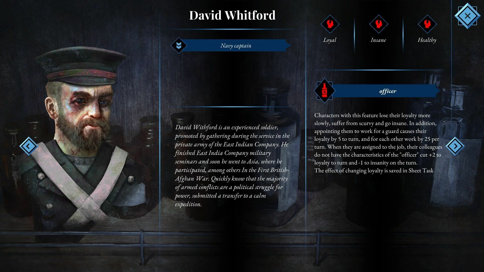 Each of your crew members has their own strengths, a function they excel at serving. There’s specialized personnel, that’s your [b]mariners, soldiers of different military ranks, engineers, and regular crew, the smokers, icebreakers, and cooks[/b]. The main way you can divide your crew is their rank, whether they’re an officer of The Royal Navy or a regular seaman. Of course, the conditions you’ll face are extreme, and they ask for equally extreme measures. You won’t have the luxury of stacking every post with a perfect sailor who excels at it, and that’s why we let you give any task you want to whoever you want, even if it’s not optimal. Flexibility is key, and no one is safe from menial chores.