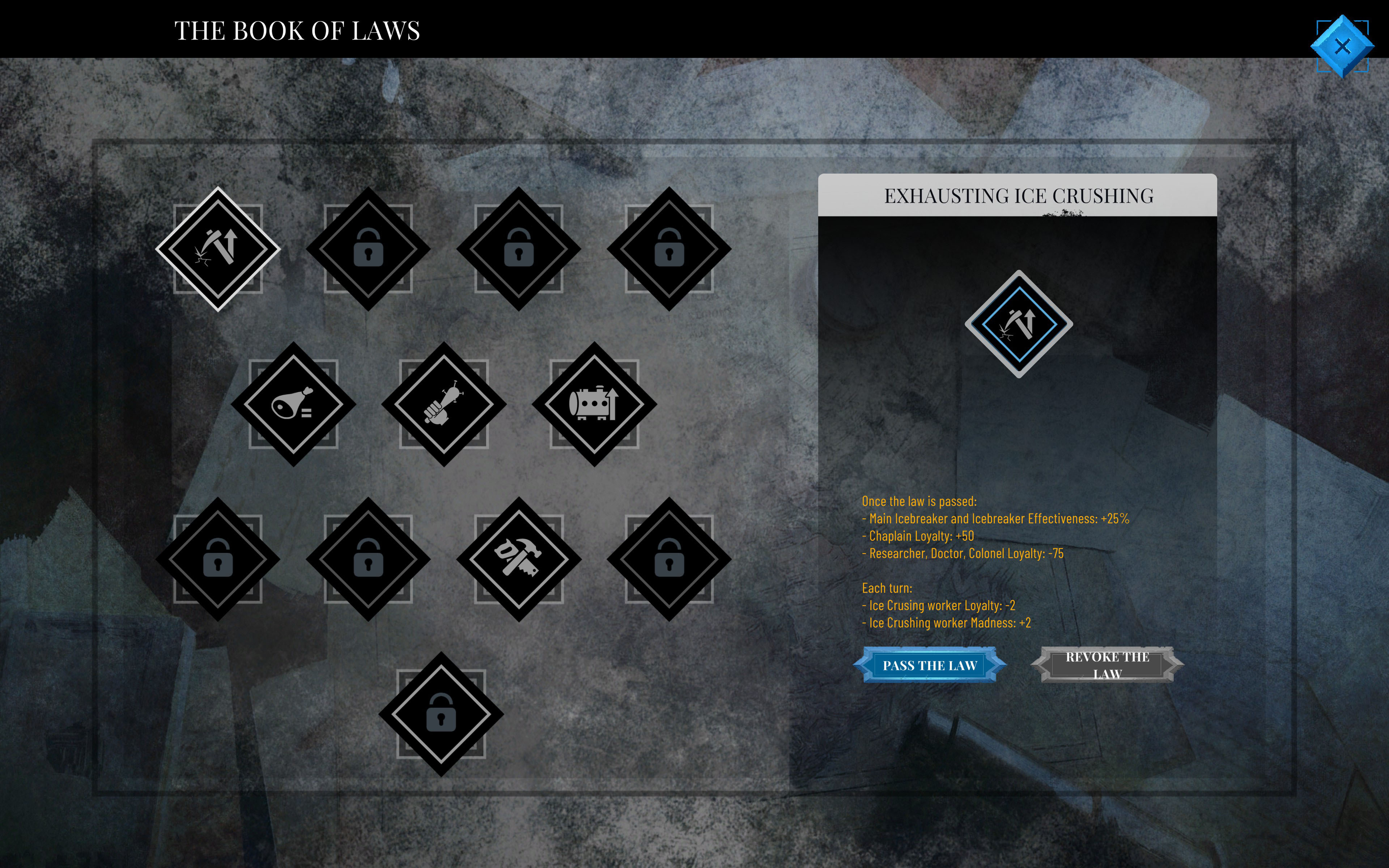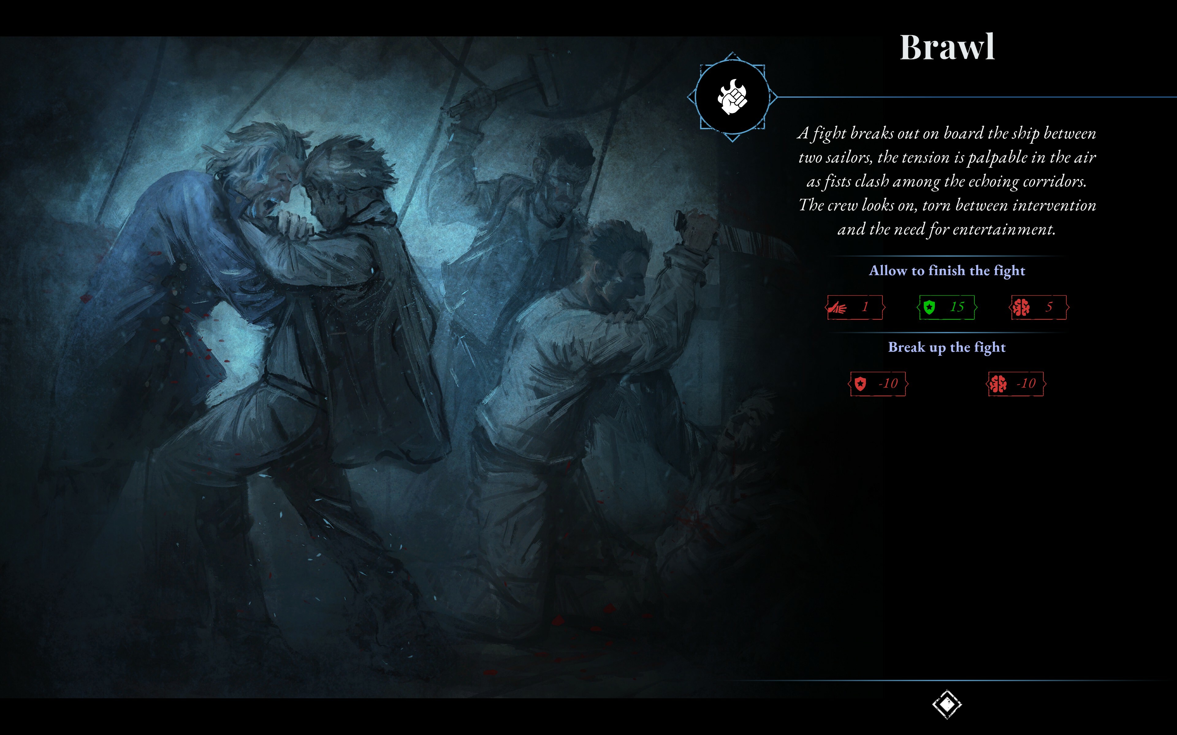 The vision of eternally remaining at the pole may seem like sufficient motivation for the crew to break out of this hell, but don’t forget that your decisions affect the morale of the sailors. Is it better to rule with an iron fist, or try to win people over? Should the good of the many be more important than the good of the individual? How will you react if opposing factions form among the people? Loyalty might turn out to be worth its weight in gold.