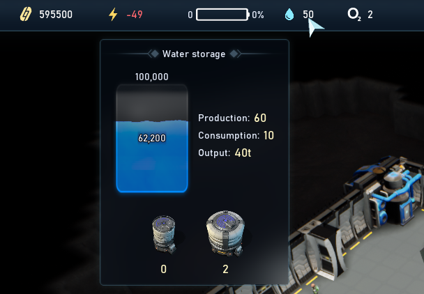 - Added water and oxygen consumption displays in several interfaces.