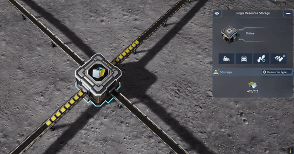 Or, for example, organizing the loading of several large platforms simultaneously by connecting them in series. Equipment factories can now be automated by connecting the conveyor input and output to a Multi-Resource Storage, which will automatically supply the necessary resources upon unit construction request.