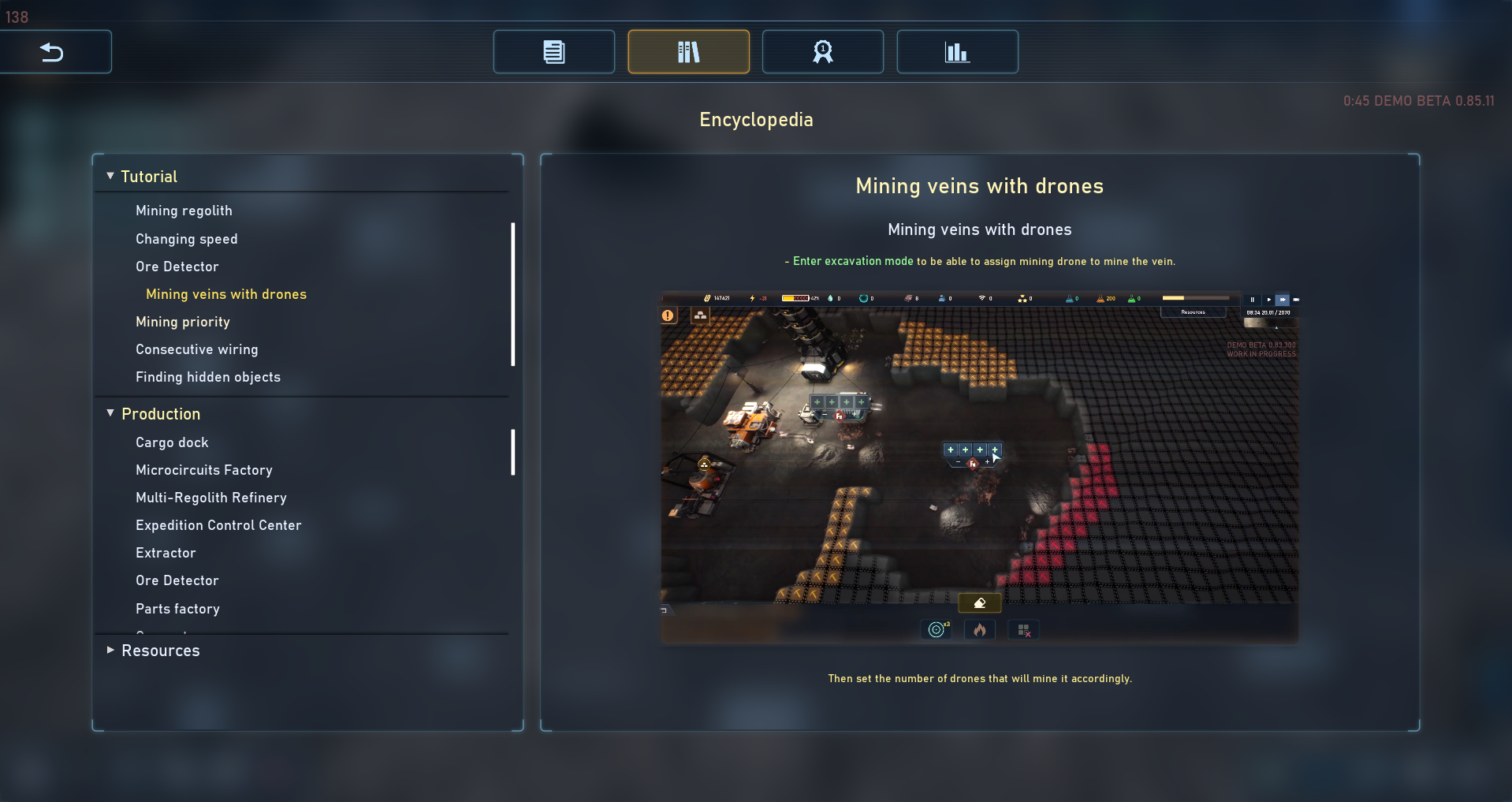 The pages are no longer duplicated, the system for adding new pages has been improved, and the overall mechanism of the th Encyclopedia has been improved. Now the it is a useful tool where the player can find information about resources and modules, find gameplay tips or re-watch tutorial videos.