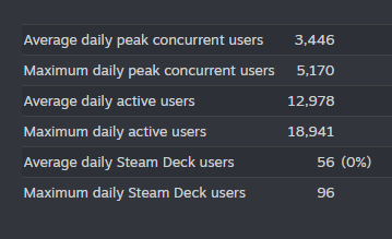 The average number of unique players per day was [b]12,978[/b], with a peak of almost [b]19,000[/b] active players in a single day.