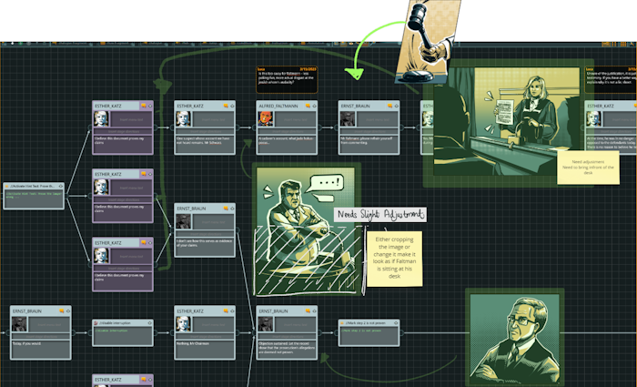 After researching a historical case, the game designers arrange the events to make them playable: they decide which witness unveils which clue, what files need to be found and how, and who sends the investigators off course.