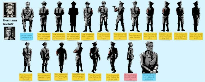 From bio and description, the character artists create the NPC, skeleton, and poses. So many poses!