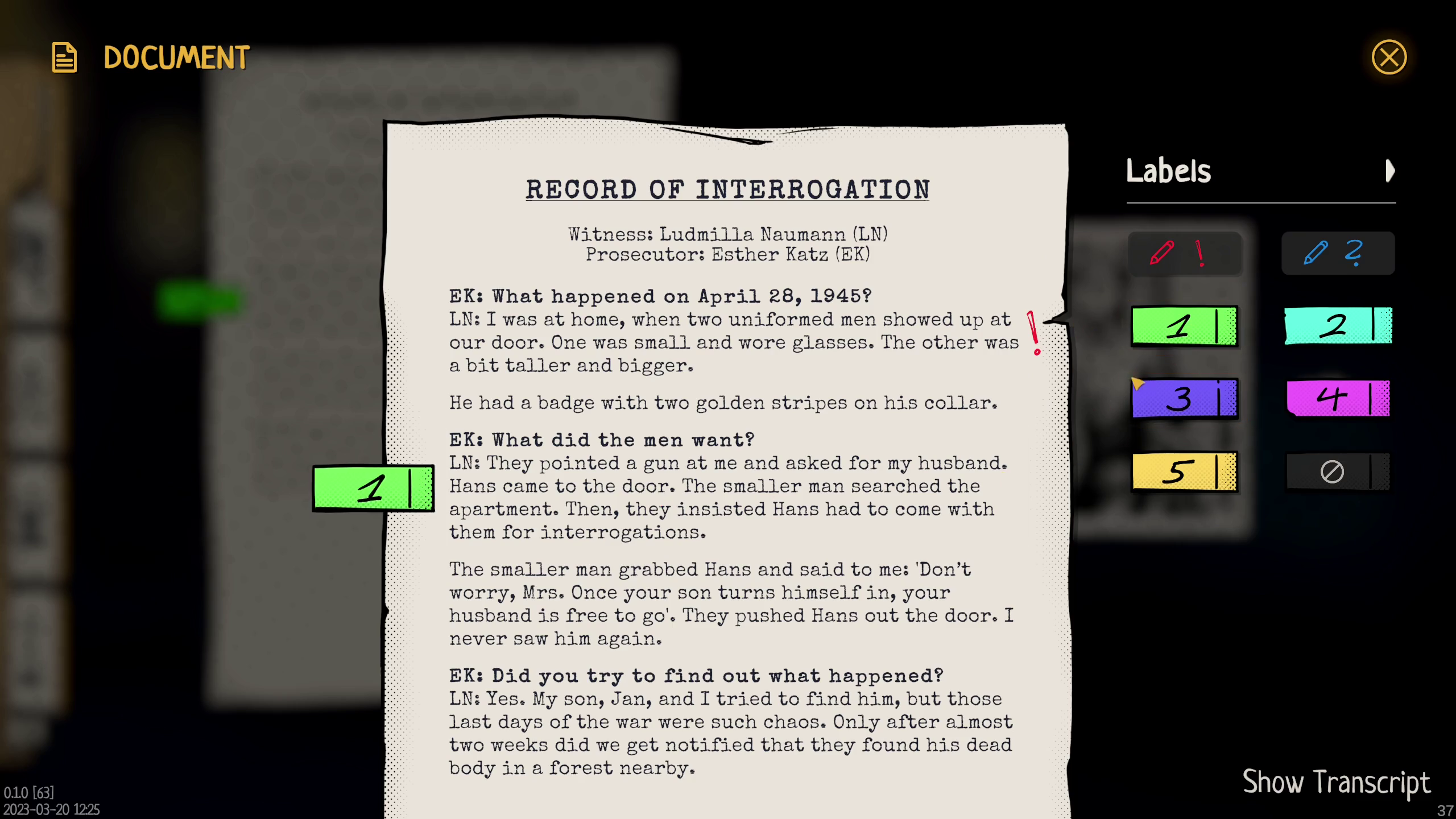 Conversely, if you seek a more challenging investigation, be prepared to work hard to uncover evidence. In the interruption challenge, you won't receive any pre-selection, meaning you'll need to identify the correct document from all available options. Additionally, you must pinpoint the relevant section within the document to successfully overcome the challenge. Our newly implemented text marking feature comes in handy here. And, if desired, you can also experience all this under time pressure. Players familiar with the demo will be pleasantly surprised by the increased difficulty in solving a case.