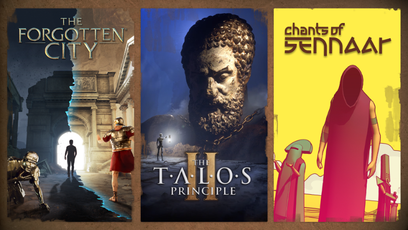 A huge thanks to [b]Modern Storyteller[/b] for their work on The Forgotten City, [b]Croteam[/b] for crafting the mind-bending world of The Talos Principle 2, and [b]RUNDISC[/b] for bringing us the beautiful and haunting Chants of Sennaa.